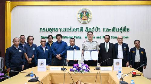 วันที่ 22 กันยายน 2568 เวลา 14.00 น. – นายอรรถพล เจริญชันษา อธิบดีกรมอุทยานแห่งชาติ สัตว์ป่า และพันธุ์พืช และพลเรือเอก อาภากร อยู่คงแก้ว นายกสมาคมดำน้ำแห่งประเทศไทย ร่วมลงนามบันทึกข้อตกลงความร่วมมือ (MOU) การสำรวจถ้ำใต้น้ำในพื้นพื้นที่ป่าอนุรักษ์ โดยได้รับเกียรติจาก นายวีระ ขุนไชยรักษ์ รองอธิบดีกรมอุทยานฯ นายอริยะ เชื้อชม ผู้อำนวยการสำนักอุทยานแห่งชาติ และนายปรสุ โกมารทัต จากสมาคมดำน้ำแห่งประเทศไทย ร่วมเป็นสักขีพยาน ณ ห้องประชุมชั้น 2 อาคารศูนย์ปฏิบัติการกรมอุทยานแห่งชาติ สัตว์ป่า และพันธุ์พืช