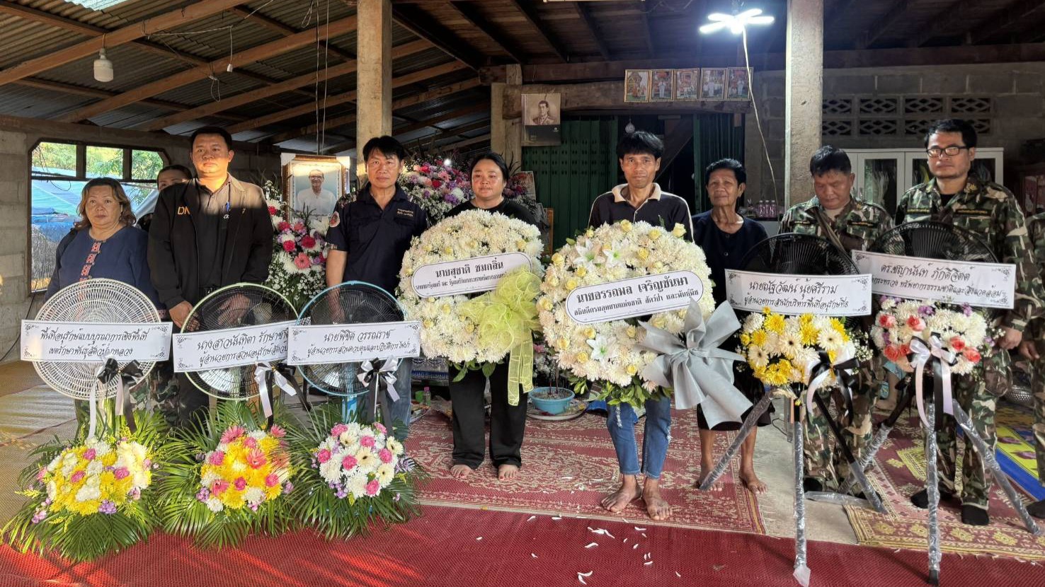 ​โดยในวันนี้ นายณัฐวัฒน์ นุ้ยศรีราม ผู้อำนวยการสำนักบริหารพื้นที่อนุรักษ์ที่ 8 (ขอนแก่น) มอบหมายให้นายเกียรติศักดิ์ ทองจันทร์ ผู้ช่วยหัวหน้าเขตรักษาพันธุ์สัตว์ป่า (ขสป.) ภูหลวง และเจ้าหน้าที่ ร่วมกับนายวัชระ ธรรมสอน หัวหน้าโครงการฟื้นฟูอาหารช้างป่าอันเนื่องมาจากพระราชดำริ เข้าแสดงความเสียใจและร่วมพิธีสวดอภิธรรมศพ นายประสิทธิ์ พร้อมเป็นผู้แทนมอบพวงหรีดในนามของ นายสุชาติ ชมกลิ่น รองนายกรัฐมนตรี และ รมว.ทส., ดร.ชญานันท์ ภักดีจิตต์ ปลัด ทส., นายอรรถพล เจริญชันษา อธิบดีกรมอุทยานแห่งชาติ สัตว์ป่า และพันธุ์พืช และผู้บริหารระดับสูง นอกจากนี้ หัวหน้าเขตรักษาพันธุ์สัตว์ป่าภูหลวง ยังได้มอบเงินช่วยเหลือเบื้องต้นและรับเป็นเจ้าภาพสวดอภิธรรมศพในวันที่ 22 ตุลาคม 2568 รวมถึงจะเร่งดำเนินการขอรับการช่วยเหลือเยียวยาตามระเบียบของกรมอุทยานฯ โดยเร็วที่สุด