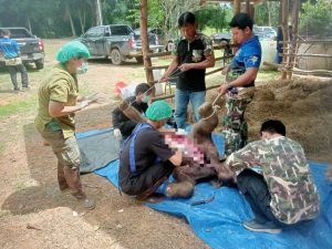 ทั้งนี้ ทีมสัตวแพทย์ได้ทำการเก็บตัวอย่างเพื่อส่งตรวจประกอบเป็นข้อมูลในการสรุปหาสาเหตุการตายของลูกช้างต่อไป และได้ดำเนินการทำลายซากโดยวิธีฝังดินกลบและโรยปูนขาวเรียบร้อยแล้ว.