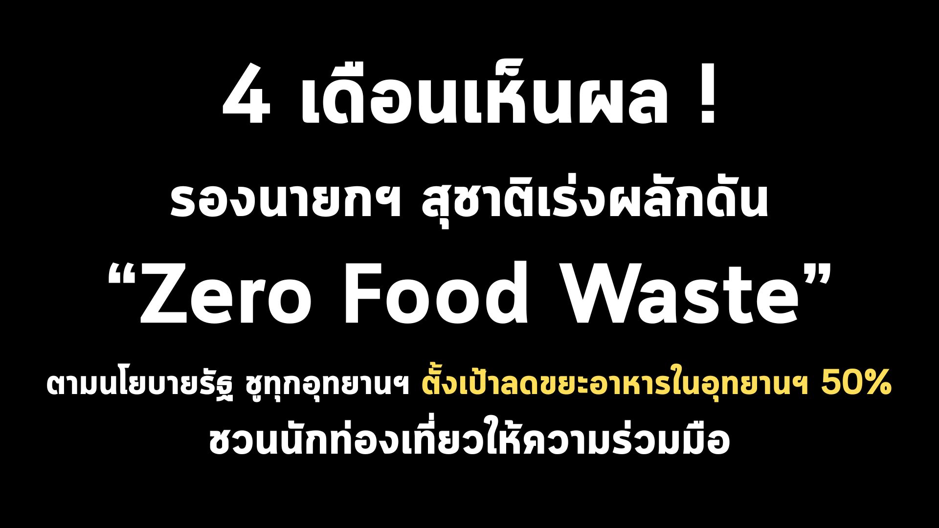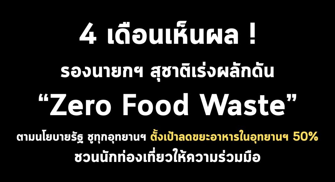 นายอรรถพล เจริญชันษา อธิบดีกรมอุทยานแห่งชาติ สัตว์ป่า และพันธุ์พืช เปิดเผยว่า จากนโยบายดังกล่าวได้สั่งการให้ทุกอุทยานฯ มุ่งลดขยะอาหารเป็นศูนย์ โดยมีการจัดทำแผนปฏิบัติการระยะเร่งด่วน 4 เดือน (Quick Win) เพื่อกำหนดมาตรการและสร้างต้นแบบ สู่การรวบรวม Best Practice และติดตามประเมินผล ขณะเดียวกันได้จัดทำแผนระยะ 5 ปี (ปีงบประมาณ พ.ศ. 2569-2573) สู่เป้าหมายอุทยานแห่งชาติ 100% Zero Food Waste เพื่อขยายผลการดำเนินงานไปสู่พื้นที่อุทยานแห่งชาติทั่วประเทศ โดยมีเป้าหมายที่ท้าทายว่า ภายในปี 2573 อุทยานแห่งชาติ 156 แห่ง จะต้องเข้าร่วมเพื่อดำเนินการจัดการขยะอาหาร และสามารถลดปริมาณขยะอาหารให้ได้ร้อยละ 50 โดยขอให้นักท่องเที่ยวทุกคนร่วมมือกับมาตรการลดและกำจัดขยะที่ถูกต้องโดยเฉพาะขยะอาหารกับกรมอุทยานแห่งชาติฯ ด้วย