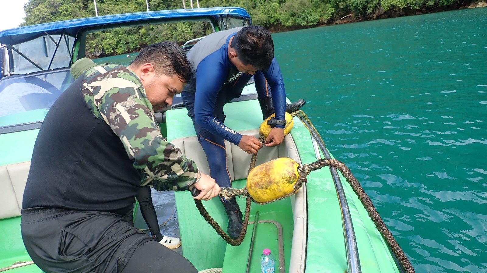 ด้านนายนพดล ปราบหงษ์ หัวหน้าอุทยานแห่งชาติธารโบกขรณี จังหวัดกระบี่ รายงานภารกิจด้านการเตรียมความพร้อมและการดูแลความปลอดภัยในพื้นที่อุทยานฯ ดังนี้ เจ้าหน้าที่ได้ดำเนินการซ่อมแซมทุ่นจอดเรือ จำนวน 1 ลูก บริเวณเกาะปากกะ (เกาะห้อง) เพื่อให้เรือสามารถจอดได้อย่างเป็นระเบียบ อันเป็นมาตรการสำคัญในการป้องกันความเสียหายต่อแนวปะการังจากการทิ้งสมอเรือ และดำเนินการซ่อมแซมทุ่นไข่ปลาความยาวประมาณ 150 เมตร เพื่อกำหนดขอบเขตพื้นที่สำหรับการเล่นน้ำของนักท่องเที่ยว และป้องกันมิให้เรือเข้าสู่เขตอันตราย