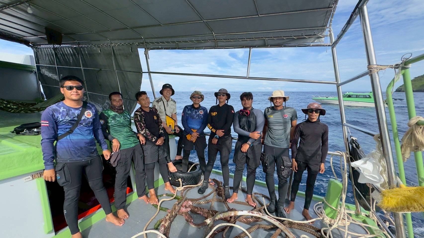 จากรายงานของนายศิริวัฒน์ แสงฉวี หัวหน้าอุทยานแห่งชาติหาดนพรัตน์ธารา-หมู่เกาะพีพี ระบุว่า เจ้าหน้าที่อุทยานฯ นำโดยนายลัญจกร สุขสวัสดิ์ ผู้ช่วยหัวหน้าอุทยานฯ ได้นำทีมปฏิบัติการใต้น้ำติดตั้งทุ่นไข่ปลา บริเวณอ่าวถ้ำพระนาง ความยาว 100 เมตร เพื่อคุ้มครองพื้นที่วางไข่ของสัตว์น้ำ พร้อมทั้งดำน้ำเก็บขยะบริเวณเกาะห้า พบเศษซากอวนประมาณ 1 กิโลกรัม ซึ่งสอดคล้องกับภารกิจของมูลนิธิฯ ที่ให้ความสำคัญกับการเก็บกู้ซากอวนที่พันติดปะการังเทียม เพื่อลดผลกระทบต่อระบบนิเวศทางทะเล