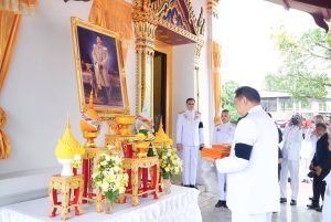 ทั้งนี้ ในช่วงเช้าได้มีขบวนรถบุษบก อัญเชิญผ้าพระกฐินพระราชทานและเครื่องบริวารพระกฐินอัญเชิญองค์กฐินพร้อมเครื่องบริวารพระกฐินพระราชทาน จากบริเวณอุทยานพระบรมราชานุสรณ์ พระบาทสมเด็จพระพุทธเลิศหล้านภาลัย (อุทยาน ร.2) มายังวัดอัมพวันเจติยาราม เพื่อมาประดิษฐานยังโต๊ะหมู่เบื้องหน้าพระบรมฉายาลักษณ์พระบาทสมเด็จพระเจ้าอยู่หัว ก่อนพิธีถวายผ้าพระกฐินพระราชทาน