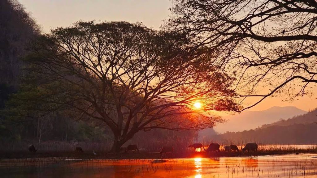 “ต้นฉำฉา” เป็นพันธุ์ไม้ดั้งเดิมของภาคเหนือ ขึ้นอยู่ตามริมแม่น้ำและลำห้วย ลักษณะเด่นคือลำต้นสูงโปร่ง ใบเรียวเล็ก และเมื่อถึงช่วงปลายฝนต้นหนาว (ประมาณเดือนตุลาคม–ธันวาคม) ต้นไม้จะผลัดใบจนเหลือแต่กิ่งก้านเปลือยเปล่า แต่กลับกลายเป็นภาพสะท้อนอันงดงามเมื่อ “เงาของต้นฉำฉา” ทอดตัวลงบนผิวน้ำนิ่งของเขื่อน จนกลายเป็นมุมถ่ายภาพสุดโรแมนติกที่นักท่องเที่ยวสายธรรมชาติและช่างภาพต่างเฝ้ารอ