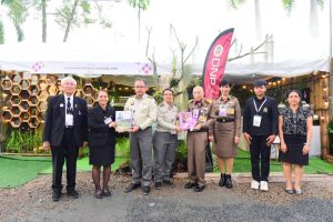 ในโอกาสอันเป็นมงคลนี้ คณะเจ้าหน้าที่กรมอุทยานแห่งชาติ สัตว์ป่า และพันธุ์พืช นำโดยนายวรดลต์ แจ่มจำรูญ ผู้เชี่ยวชาญเฉพาะด้านอนุกรมวิธานพืช ทำหน้าที่หัวหน้ากลุ่มงานพฤกษศาสตร์ป่าไม้ พร้อมด้วยนายมานพ ผู้พัฒน์ นักวิชาการป่าไม้ชำนาญการพิเศษ นางสาวนันทวรรณ สุปันตี นักวิทยาศาสตร์ชำนาญการพิเศษ นายพีรศิลป์ เถาถวิล นักวิชาการป่าไม้ปฏิบัติการ นายธนวัฒน์ ธีระนันท์ และนางสาวชนิษฐา สีสว่าง ผู้ช่วยนักวิจัย ร่วมกับนางเครือวัลย์ พิพัฒน์สวัสดิกุล หัวหน้าสวนรุกขชาติไม้เมืองหนาว และเจ้าหน้าที่สวนรุกขชาติไม้เมืองหนาว ได้เข้าร่วมเฝ้ารับเสด็จ ณ บูธนิทรรศการของกรมอุทยานแห่งชาติ สัตว์ป่า และพันธุ์พืช