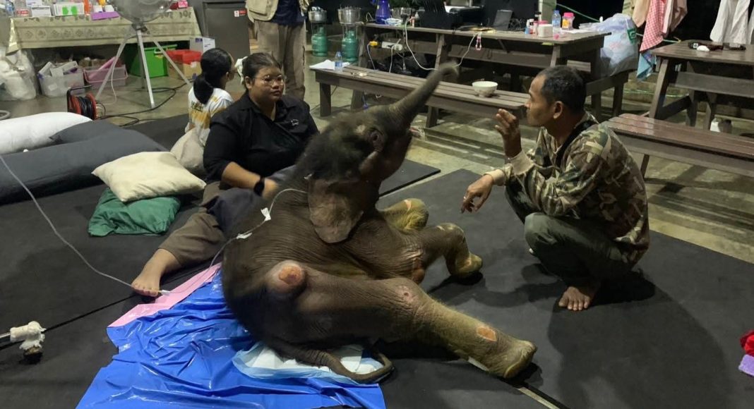 ทีมสัตวแพทย์และผู้เชี่ยวชาญจากหลายหน่วยงานร่วมกันเฝ้าระวังและดูแลลูกช้างป่าเพศเมียชื่อ “ข้าวต้ม” อายุเพียง 1 เดือน 16 วัน อย่างใกล้ชิด หลังพบติดเชื้อไวรัสเฮอร์ปีส์ในช้างชนิดที่ 4 (EEHV Type 4) ที่ส่งผลกระทบต่อระบบทางเดินอาหาร