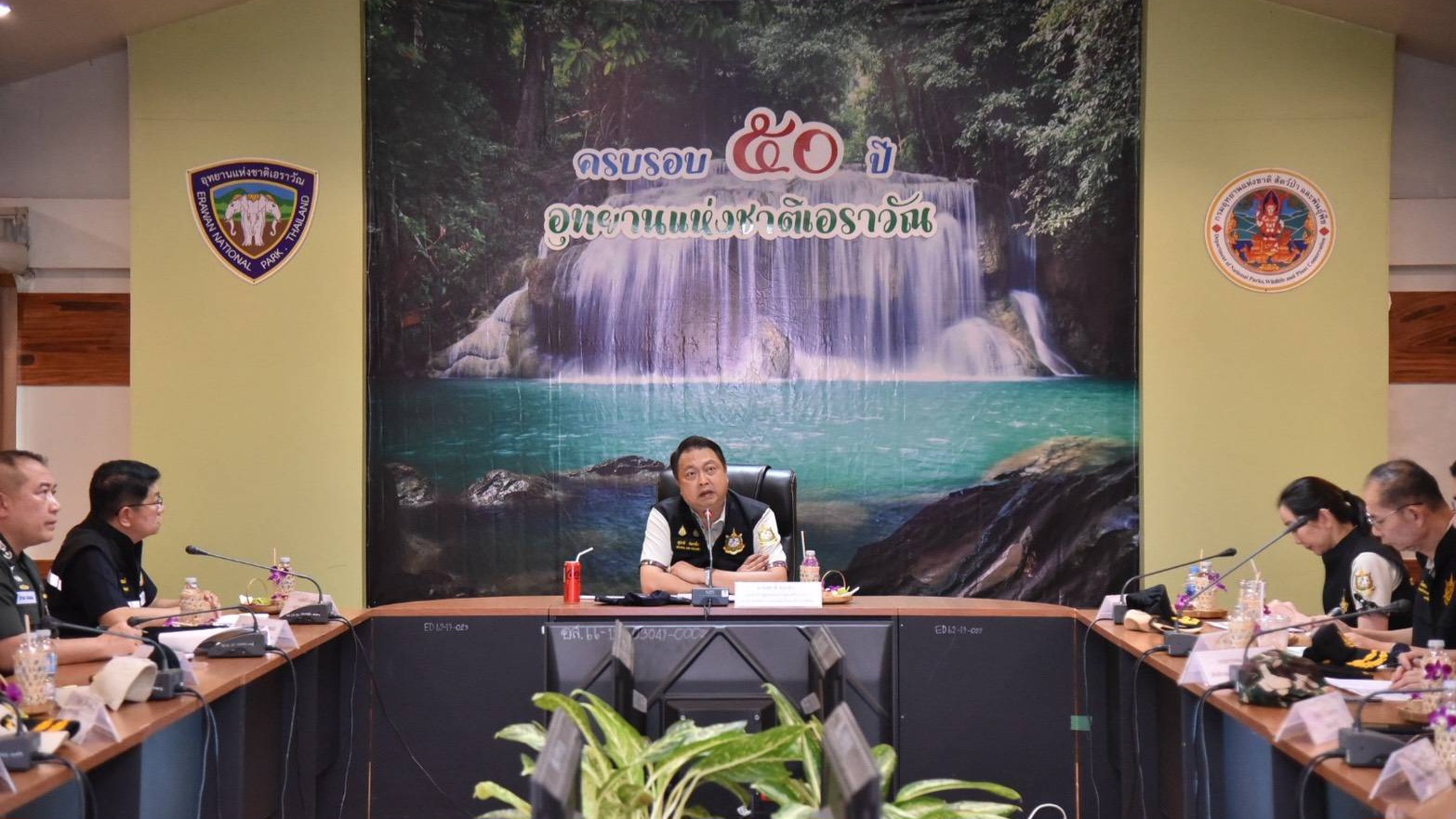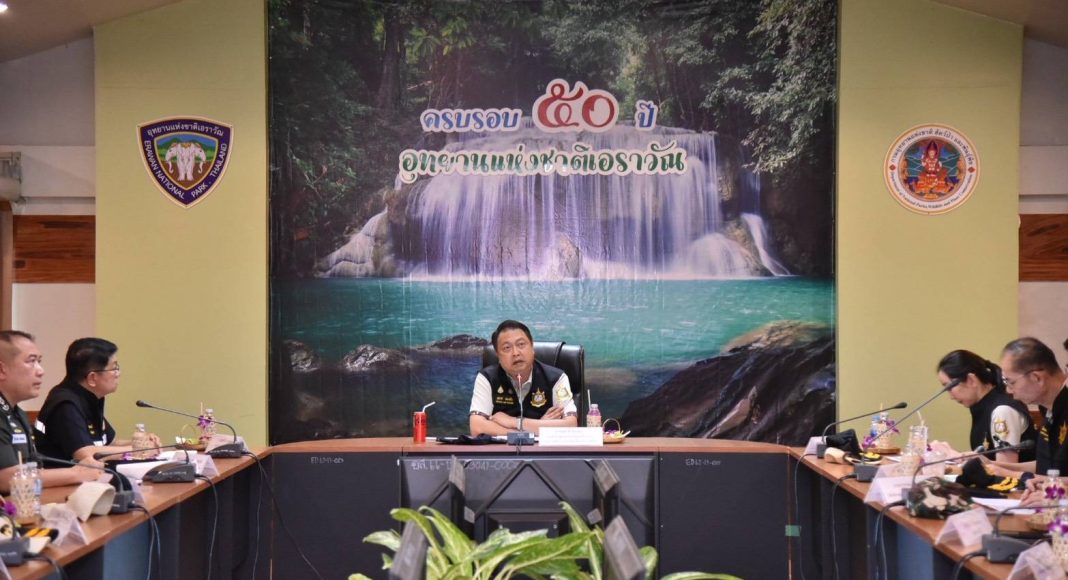 วันที่ 9 พฤศจิกายน 2568 เวลา 11.30 น. นายสุชาติ ชมกลิ่น รองนายกรัฐมนตรีและรัฐมนตรีว่าการกระทรวงทรัพยากรธรรมชาติและสิ่งแวดล้อม (ทส.) เป็นประธานการประชุมหัวหน้าส่วนราชการในสังกัด ทส. ณ ห้องประชุมอุทยานแห่งชาติเอราวัณ จังหวัดกาญจนบุรี พร้อมตรวจเยี่ยมพื้นที่อุทยานฯ เพื่อติดตามผลการดำเนินงานและขับเคลื่อนนโยบายเร่งด่วนด้านการอนุรักษ์ทรัพยากรธรรมชาติ ทั้งในประเด็นการป้องกันและควบคุมไฟป่า การแก้ไขปัญหาการบุกรุกที่ดิน และการจัดการขยะจากการท่องเที่ยว