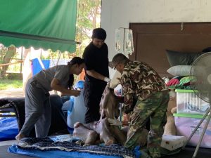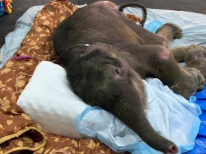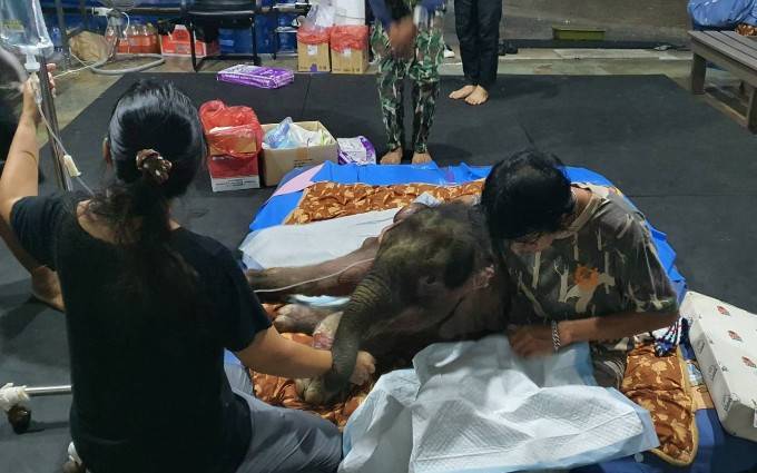 โดยทีมสัตวแพทย์ ทำการให้สารน้ำทางหลอดเลือดดำตลอดทั้งวัน เพื่อป้องกันภาวะขาดน้ำ และพยุงระดับน้ำตาลในเลือด ทำการให้ยาปฏิชีวนะ ทำการให้ยาลดการเกิดแผลในทางเดินอาหาร ทำการให้ยากระตุ้นภูมิ และทำการให้ยาต้านไวรัสชนิด EEHV พร้อมทั้งทำการรักษาแผล และแผลกดทับบริเวณผิวหนังอย่างต่อเนื่อง โดยการทำความสะอาดแผลและพ่นยารักษาแผล