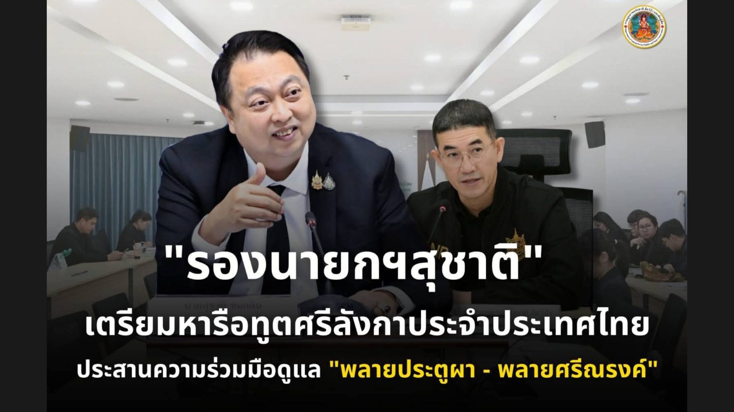 13 พ.ย. 68 นายสุชาติ ชมกลิ่น รองนายกรัฐมนตรีและรัฐมนตรีว่าการกระทรวงทรัพยากรธรรมชาติและสิ่งแวดล้อม (รมว.ทส.) มีกำหนดเข้าพบและหารือกับเอกอัครราชทูตสาธารณรัฐสังคมนิยมประชาธิปไตยศรีลังกาประจำประเทศไทย เพื่อพิจารณาแนวทางความร่วมมือในการดูแลช้างไทย 2 เชือก คือ “พลายประตูผา” และ “พลายศรีณรงค์” ตามข้อสั่งการของนายอนุทิน ชาญวีระกุล นายกรัฐมนตรีและรัฐมนตรีว่าการกระทรวงมหาดไทย โดยเน้นย้ำหลักมิตรภาพและสวัสดิภาพของช้างเป็นสำคัญ