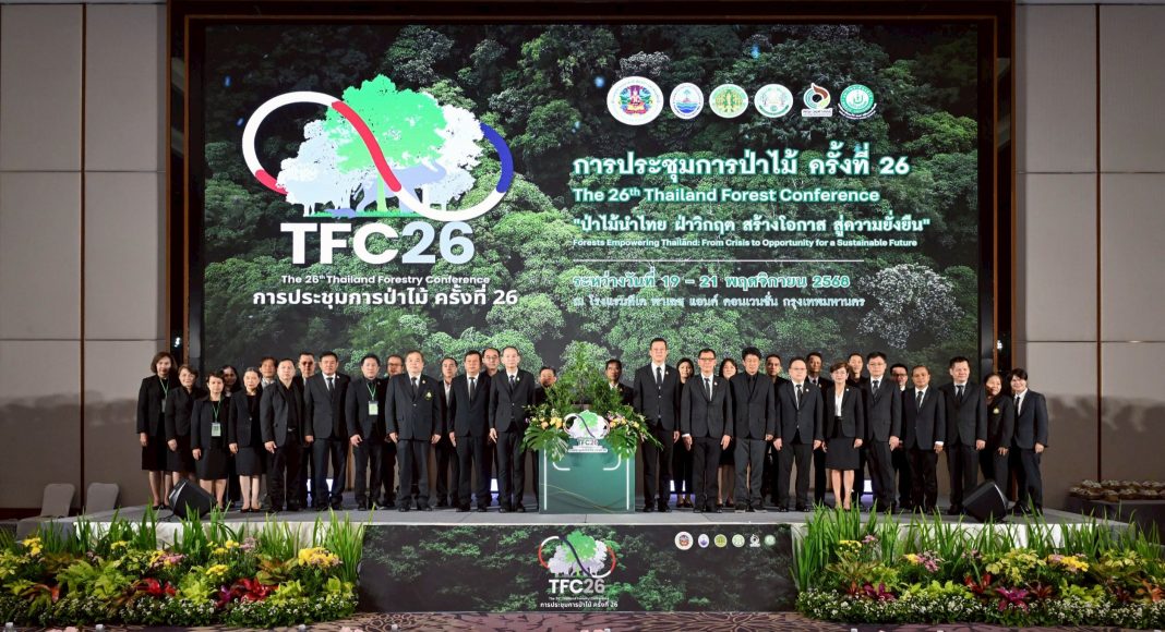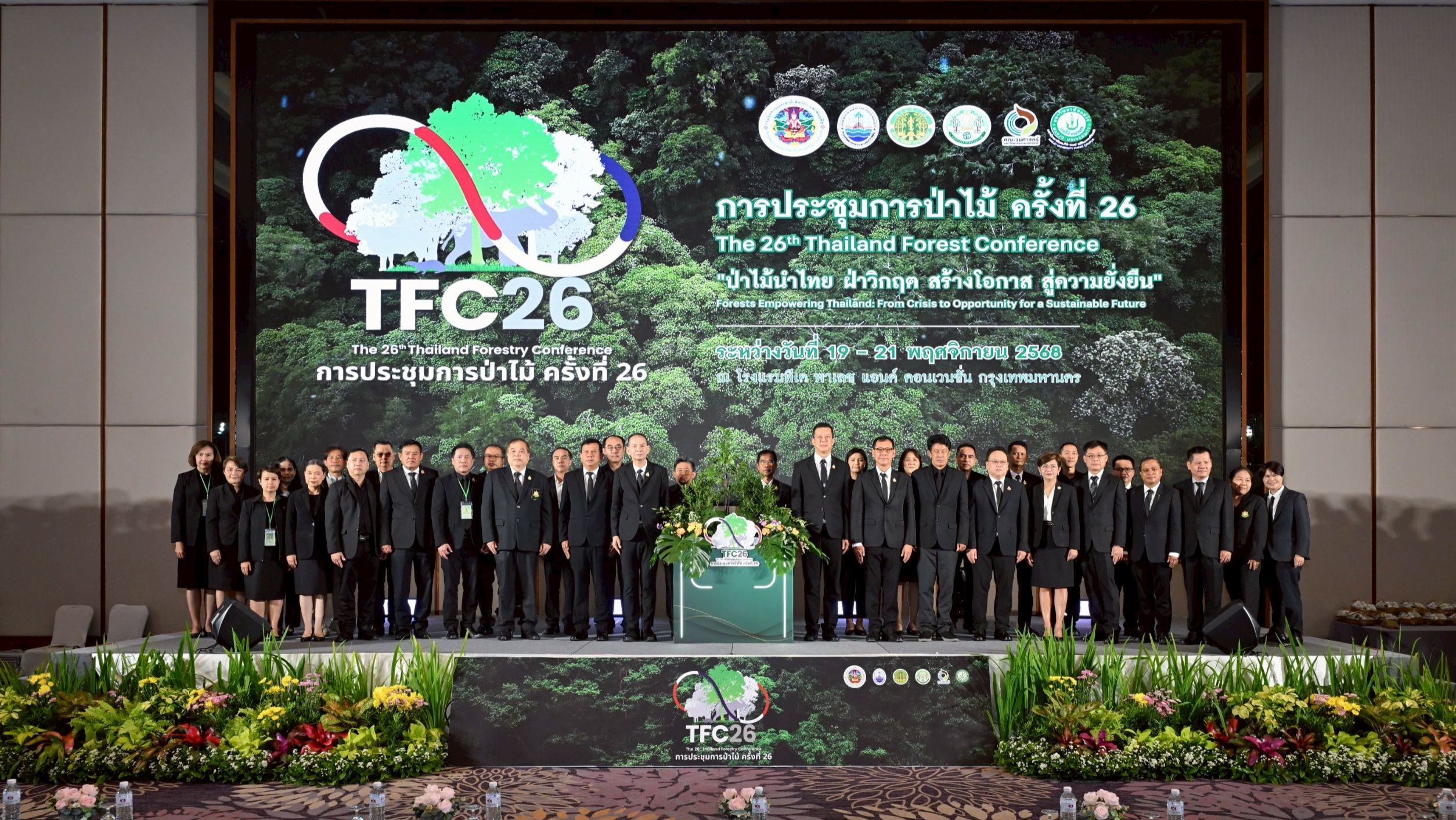 วันที่ 19 พฤศจิกายน 2568 กรมอุทยานแห่งชาติ สัตว์ป่า และพันธุ์พืช ร่วมกับหน่วยงานภาคีเครือข่าย จัดการประชุมการป่าไม้ ครั้งที่ 26 (Thailand Forestry Conference 26th) ภายใต้หัวข้อหลัก “ป่าไม้นำไทย ฝ่าวิกฤต สร้างโอกาส สู่ความยั่งยืน (Forests Empowering Thailand: From Crisis to Opportunity for a Sustainable Future)” ระหว่างวันที่ 19-21 พฤศจิกายน พ.ศ. 2568 ณ ห้องประชุมแกรนด์คอนแวนชั่น ชั้น 6 โรงแรมทีเค พาเลซ แอนด์ คอนเวนชั่น กรุงเทพมหานคร โดยมีนายนิพนธ์ จำนงสิริศักดิ์ รองปลัดกระทรวงทรัพยากรธรรมชาติและสิ่งแวดล้อมเป็นประธานในพิธีเปิด พร้อมด้วย นายชิดชนก สุขมงคล รองอธิบดีกรมอุทยานแห่งชาติ สัตว์ป่า และพันธุ์พืช กล่าวรายงาน พร้อมด้วยผู้บริหารจากภาครัฐ ภาคเอกชน ภาควิชาการ องค์กรระหว่างประเทศ สื่อมวลชน และแขกผู้มีเกียรติเข้าร่วมประชุมกว่า 500 คน