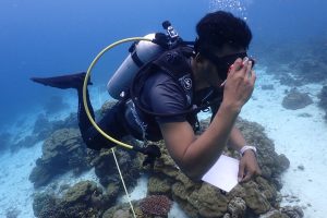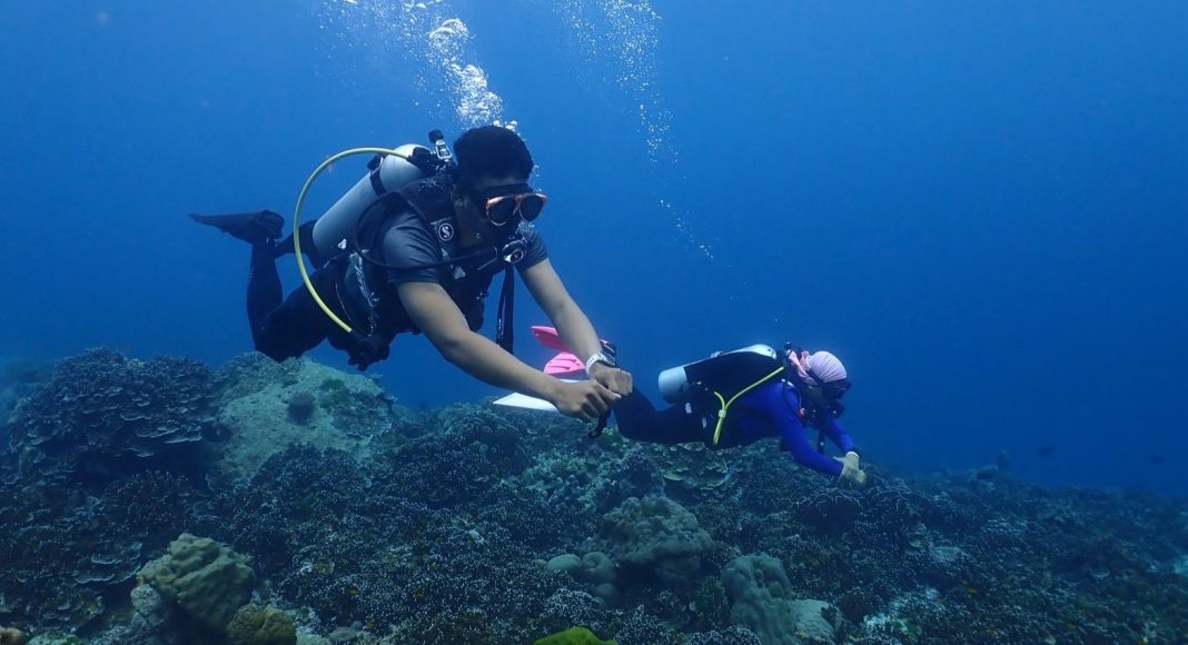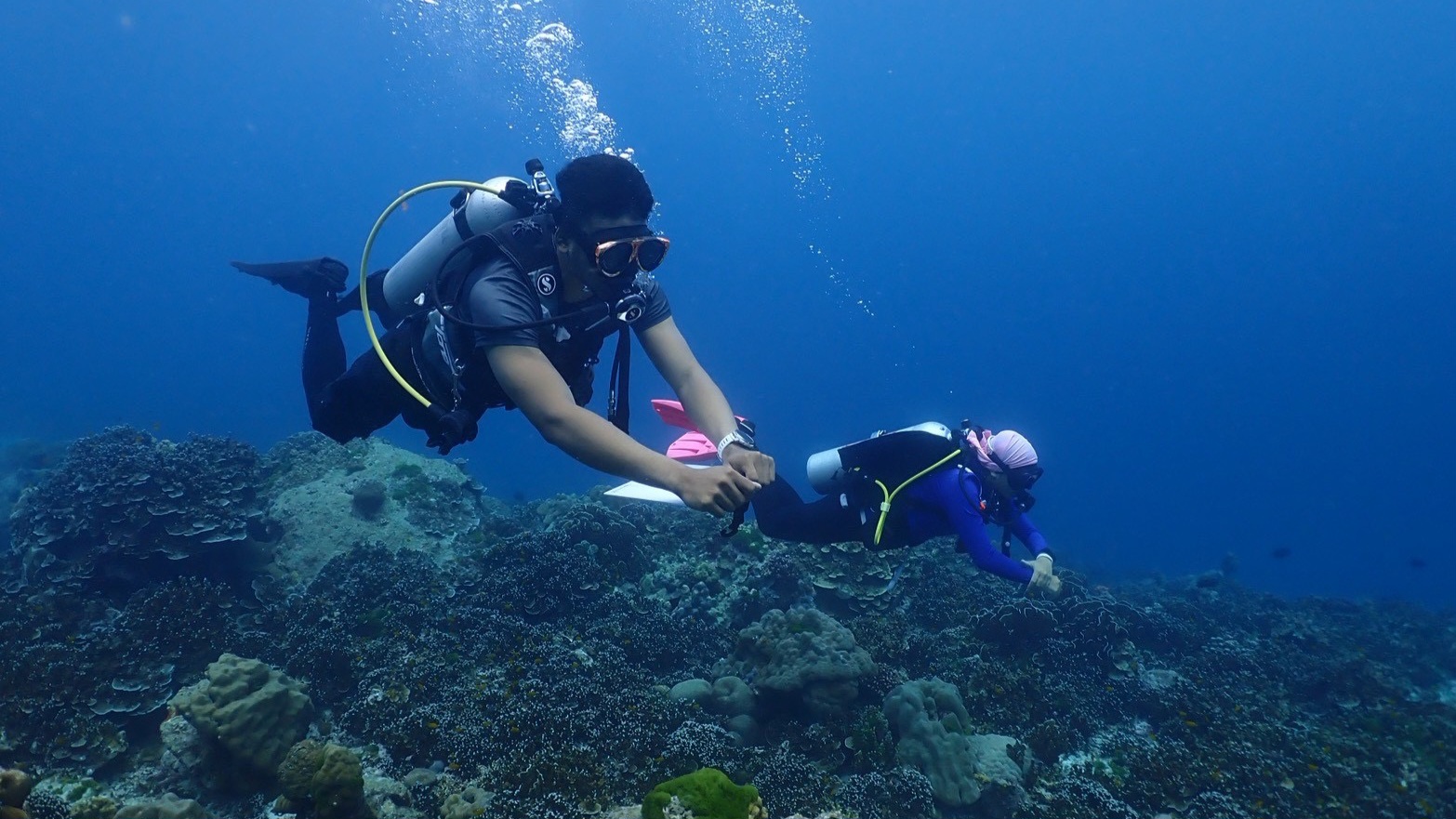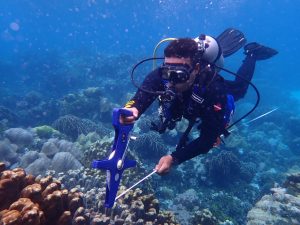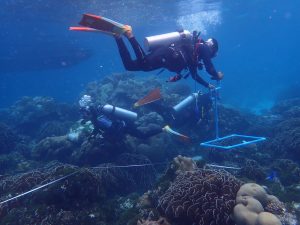 ใช้วิธีการสำรวจแบบ Photo Belt Transect พร้อมบันทึกชนิดปะการัง และปลาจากแนวปะการัง รวมทั้งสัตว์ไม่มีกระดูกสันหลัง เพื่อใช้ประเมินความสมบูรณ์ของระบบนิเวศใต้ทะเล ขณะที่อุณหภูมิน้ำทะเล ระหว่างปฏิบัติงานอยู่ที่ประมาณ 29°C คุณภาพน้ำ ใส ความขุ่นต่ำ มีระยะการมองเห็นใต้น้ำประมาณ 20-25 เมตร