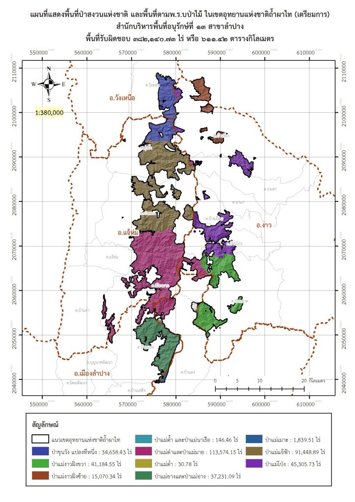 วันที่ 21 พฤศจิกายน 2568 อุทยานแห่งชาติถ้ำผาไท จังหวัดลำปาง เปิดรับฟังความคิดเห็นและการมีส่วนร่วมของผู้มีส่วนได้เสีย ชุมชนที่เกี่ยวข้อง และประชาชน ในการกำหนดพื้นที่เป็นอุทยานแห่งชาติถ้ำผาไท จังหวัดลำปาง โดยได้ดำเนินการกำหนดอุทยานแห่งชาติ ครอบคลุมพื้นที่ป่าสงวนแห่งชาติป่าขุนวัง แปลงที่หนึ่ง ป่าแม่งาวฝั่งขวา ป่าแม่งาวฝั่งซ้าย ป่าแม่โป่ง ป่าแม่ตำและป่าแม่มาย ป่าแม่ยางและป่าแม่อาง ป่าแม่เมาะ ป่าแม่แจ้ฟ้า ป่าแม่ต้ำและป่าแม่นาเรือ และป่าแม่ต่ำ ในท้องที่ตำบลบ้านโป่ง ตำบลบ้านร้อง ตำบลปงเตา ตำบลนาแก ตำบลบ้านอ้อน ตำบลบ้านหวด อำเภองาว ตำบลแจ้ห่ม ตำบลเมืองมาย ตำบลทุ่งผึ้ง ตำบลปงดอน อำเภอแจ้ห่ม ตำบลบ้านดง อำเภอแม่เมาะ ตำบลวังทอง อำเภอวังเหนือ และตำบลบ้านแลง อำเภอเมืองลำปาง จังหวัดลำปาง รวมเนื้อที่ทั้งหมดประมาณ 382,140.73 ไร่ หรือประมาณ 611.42 ตารางกิโลเมตร ปัจจุบันพื้นที่อุทยานแห่งชาติถ้ำผาไทเป็นพื้นที่ป่าที่ยังมีความอุดมสมบูรณ์ มีพันธุ์ไม้มีค่าและสัตว์ป่าหายาก