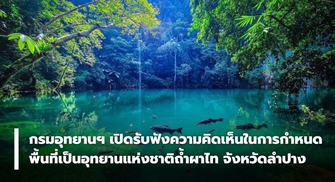จึงได้เปิดรับฟังความคิดเห็นและการมีส่วนร่วมของผู้มีส่วนได้เสีย ชุมชนที่เกี่ยวข้องและประชาชน ในการการกำหนดพื้นที่เป็นอุทยานแห่งชาติถ้ำผาไท จังหวัดลำปาง จึงขอเชิญชวนแสดงความคิดเห็นผ่านเว็บไซต์ https://portal.dnp.go.th/Content/nationalpark?contentId=42246 ระหว่างวันที่ 25 พฤศจิกายน – 9 ธันวาคม 2568