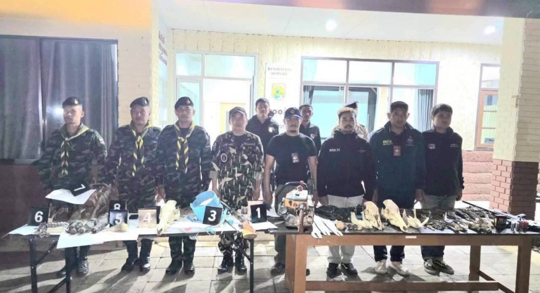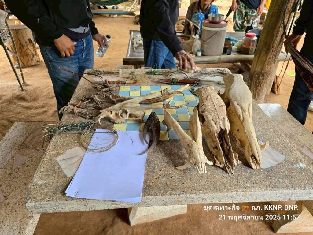 คณะเจ้าหน้าที่เข้าตรวจสอบพื้นที่บ้านโป่งแดง ท้องที่บ้านพุไทร หมู่ 3 ตำบลห้วยแม่เพรียง อำเภอแก่งกระจาน ที่พิกัด UTM 47P 0547982 E 1431145 N พบการกระทำผิดกฎหมายป่าไม้ ตรวจยึดซากสัตว์ป่าคุ้มครองและอุปกรณ์การล่าสัตว์ รวม 14 รายการ ได้แก่ ซากเม่นใหญ่ (ขนเม่น) 1 กอง, ซากเต่าเหลือง 1 ซาก, ซากกระดูกเก้ง 1 กอง, เครื่องกระสุนปืนหลายขนาด (.22 แม็กนั่ม, .22 LR, .38, 5.56 และลูกซอง), เลื่อยโซ่ไฟฟ้าแบบดัดแปลง, บาร์เลื่อยโซ่ยนต์ขนาด 24 และ 36 นิ้ว, โซ่ขนาด 12 นิ้ว, วิทยุสื่อสาร และชุดลูกเลื่อนปืนขนาด .22