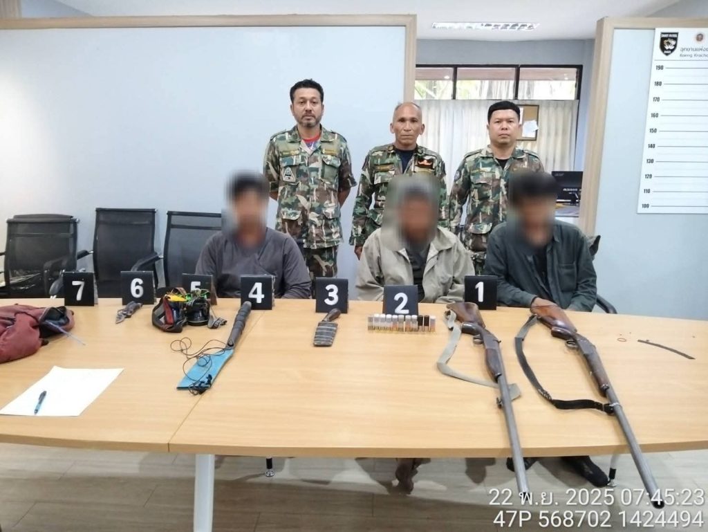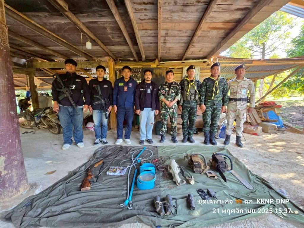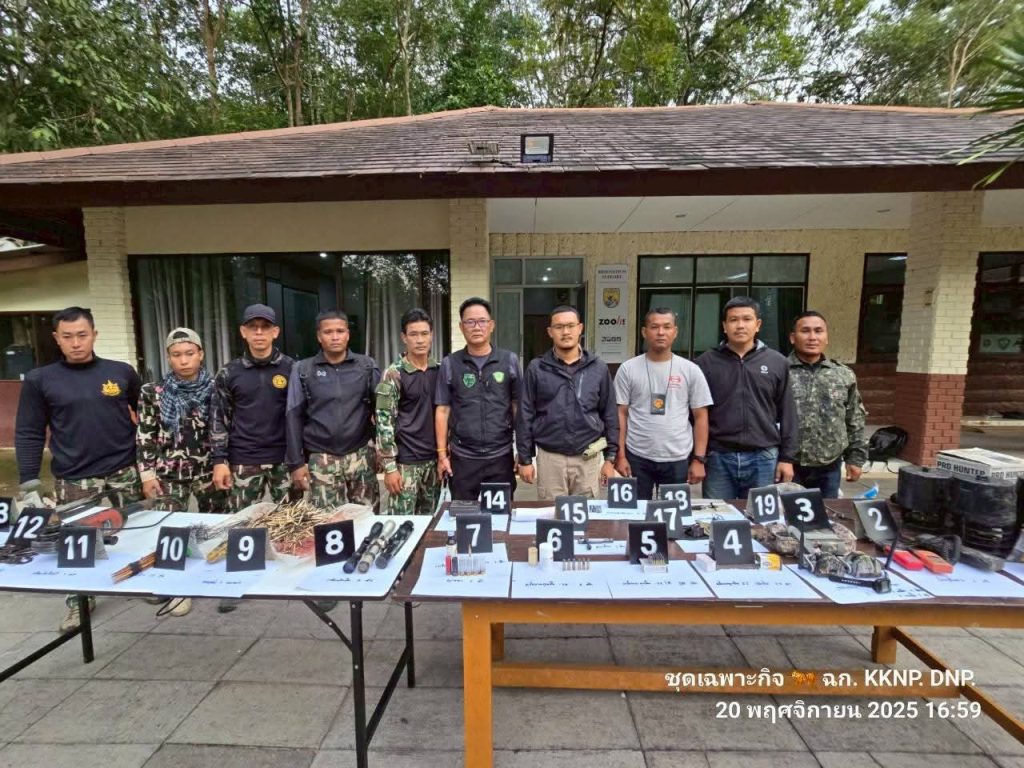 22 พฤศจิกายน 2568 2568 ชุดเฉพาะกิจกระทรวงทรัพยากรธรรมชาติและสิ่งแวดล้อม (ฉก.ทส.) บูรณาการกำลังกับเจ้าหน้าที่อุทยานแห่งชาติแก่งกระจาน เข้าดำเนินการปราบปรามผู้กระทำผิดกฎหมายป่าไม้และสัตว์ป่าอย่างเข้มข้น ตรวจยึดของกลางสำคัญรวม 5 คดี ระหว่างปฏิบัติการในพื้นที่อุทยานแห่งชาติแก่งกระจาน จังหวัดเพชรบุรี ระหว่างวันที่ 20-22 พ.ย. 68 ของกลางที่ตรวจยึดได้รวมถึงอาวุธปืน ซากสัตว์ป่าคุ้มครอง และอุปกรณ์ล่าสัตว์จำนวนมาก