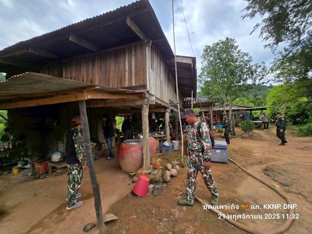 คณะเจ้าหน้าที่เข้าตรวจค้นบ้านพักที่พิกัด UTM 47P 0547885 E 1431041 N ในเขตอุทยานแห่งชาติแก่งกระจาน พบบ้านพักน่าต้องสงสัย 1 หลัง ไม่พบบุคคลใดอยู่ในบริเวณ แต่ตรวจพบอุปกรณ์การกระทำความผิด 9 รายการ ได้แก่ ปืนลูกซองยาว 1 กระบอก, เครื่องกระสุนปืนลูกซองขนาด 12 เกจ จำนวน 15 นัด, บ่วงแร้วดักสัตว์ 2 อัน, ซากกะโหลกหมูป่า 1 ซาก, ซากเขากวาง 1 ซาก, บาร์เลื่อยโซ่ยนต์ขนาด 22 นิ้วพร้อมโซ่, เลื่อยโซ่ยนต์ 2 เครื่อง, วิทยุสื่อสาร 1 เครื่อง และคลึงต่อไก่ 1 ชุด
