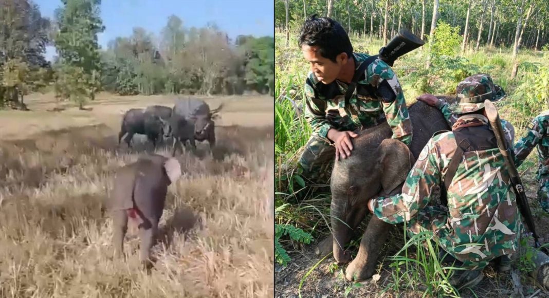 เจ้าหน้าที่ ขสป.อ่างฤาไน ช่วย 2 ลูกช้างป่าพลัดหลง “ถูกควายขวิด-ขาติดบ่วง” กลับคืนป่าอย่างปลอดภัย