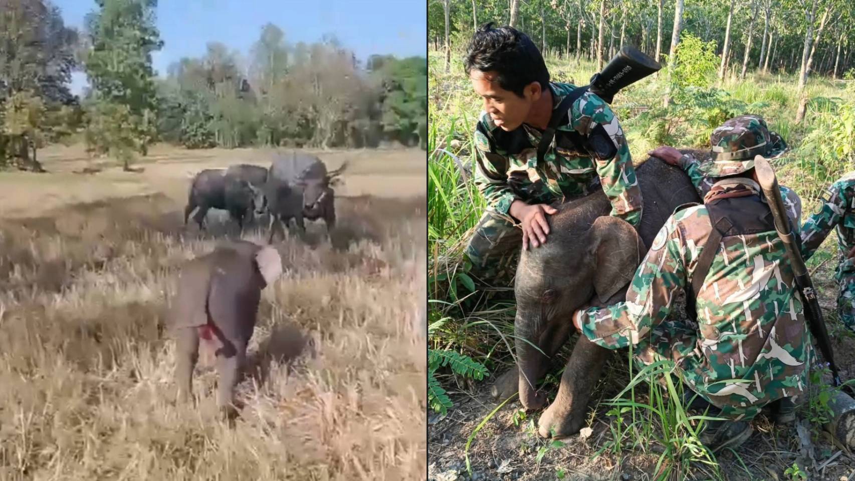 เจ้าหน้าที่เขตรักษาพันธุ์สัตว์ป่าเขาอ่างฤาไน สังกัดสำนักบริหารพื้นที่อนุรักษ์ที่ 2 (ศรีราชา) จังหวัดสระแก้ว ระดมกำลังช่วยเหลือลูกช้างป่าพลัดหลงฝูง 2 ตัว ในพื้นที่ชายป่าอำเภอเขาฉกรรจ์ภายในวันเดียวกัน ตัวหนึ่งถูกควายเผือกโจมตีบาดเจ็บ และอีกตัวติดบ่วงเชือกที่ขา ก่อนนำส่งกลับเข้าป่าได้สำเร็จทั้งคู่