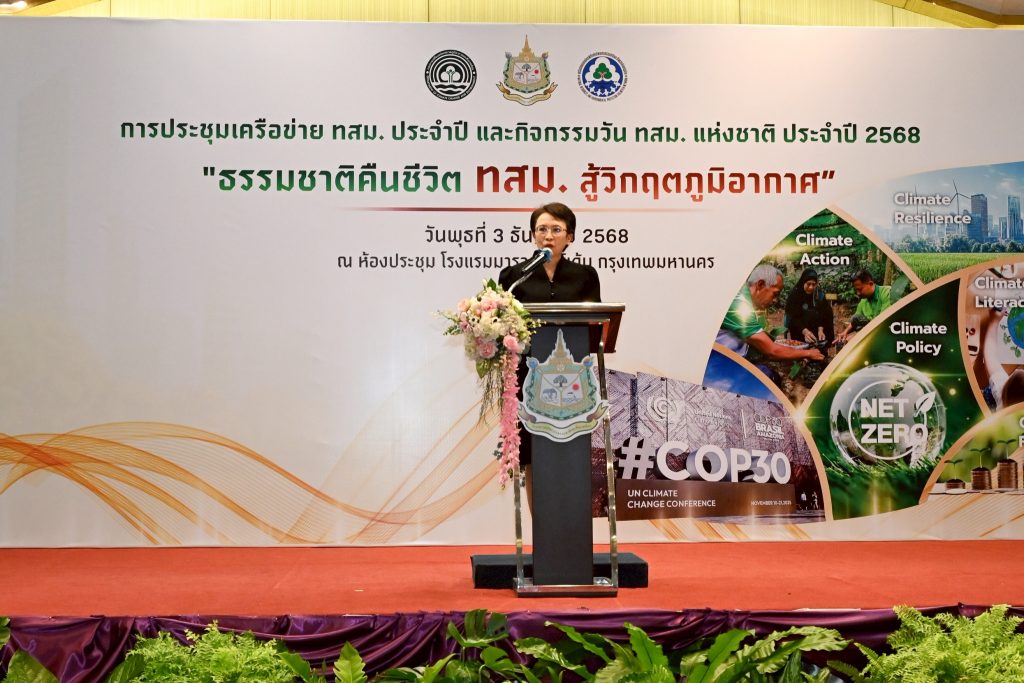 เมื่อวันที่ 3 ธันวาคม 2568 นายอรรถพล เจริญชันษา อธิบดีกรมอุทยานแห่งชาติ สัตว์ป่า และพันธุ์พืช มอบหมายให้ นางสุนีย์ ศักดิ์เสือ ผู้อำนวยการสำนักวิจัยการอนุรักษ์ป่าไม้และพันธุ์พืช เข้าร่วมเป็นเกียรติในพิธีเปิดการประชุมเครือข่าย ทสม. ประจำปี และกิจกรรมประจำวัน ทสม. แห่งชาติ ประจำปี 2568 ณ โรงแรมมารวย การ์เด้น โดยมี นางปรีญาพร สุวรรณเกษ รองปลัดกระทรวงทรัพยากรธรรมชาติและสิ่งแวดล้อม เป็นประธานเปิดงาน พร้อมด้วยผู้แทนจากสำนักงานทรัพยากรธรรมชาติและสิ่งแวดล้อมจังหวัด เครือข่าย ทสม. และหน่วยงานที่เกี่ยวข้อง เข้าร่วมงานกว่า 400 คน