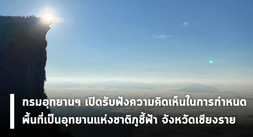 วันนี้ (9 ธันวาคม 2568) อุทยานแห่งชาติภูชี้ฟ้า จังหวัดเชียงราย เปิดรับฟังความคิดเห็นและการมีส่วนร่วมของผู้มีส่วนได้เสีย ชุมชนที่เกี่ยวข้อง และประชาชน ในการกำหนดพื้นที่เป็นอุทยานแห่งชาติภูชี้ฟ้า จังหวัดเชียงราย โดยสำนักบริหารพื้นที่อนุรักษ์ที่ 15 (เชียงราย) ได้ดำเนินการสำรวจพื้นที่ป่าสงวนแห่งชาติ จำนวน 2 ป่า ประกอบด้วย ป่าสงวนแห่งชาติป่าแม่อิงฝั่งขวาและป่าแม่งาว ป่าสงวนแห่งชาติป่าห้วยป่าแดง ป่าห้วยป่าตาล และป่าห้วยไคร้ โดยมีพื้นที่เป้าหมายจำนวน 58,069.24 ไร่ หรือ 92.91 ตารางกิโลเมตร ลักษณะเด่นของพื้นที่คือ บริเวณจุดชมวิวยอดภูชี้ฟ้า มีความสูงจากระดับทะเลปานกลางที่ 1,628 เมตร ด้วยสภาพพื้นที่โดยรอบของป่าที่สมบูรณ์ในพื้นที่ประวัติศาสตร์ และเป็นพื้นที่ที่มีระบบนิเวศมีความอุดมสมบูรณ์และมีความหลากหลายทางธรรมชาติ ตลอดจนมีภูมิทัศน์และธรรมชาติที่สวยงาม ซึ่งเป็นแหล่งศึกษาทางธรรมชาติ และเป็นสถานที่ท่องเที่ยวทางธรรมชาติเชิงอนุรักษ์ที่สำคัญของจังหวัดเชียงราย กรมป่าไม้จึงได้มีคำสั่งจัดตั้งเป็น “วนอุทยานภูชี้ฟ้า” เมื่อวันที่ 6 กุมภาพันธ์ พ.ศ.2541 โดยอยู่ในเขตป่าสงวนแห่งชาติป่าแม่อิงฝั่งขวาและป่าแม่งาว ท้องที่บ้านร่มฟ้าทองหมู่ที่ 18 ตำบลปอ อำเภอเวียงแก่น และบ้านร่มฟ้าไทย หมู่ที่ 24 ตำบลตับเต่า อำเภอเทิง จังหวัดเชียงราย