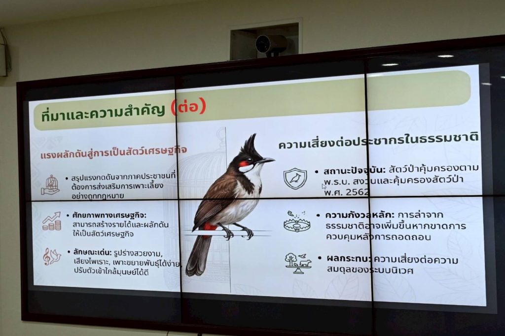 คณะกรรมการสงวนและคุ้มครองสัตว์ป่ามีมติสำคัญในการประชุมครั้งล่าสุด เห็นชอบให้ถอดชื่อ “นกปรอดหัวโขน” หรือ “นกกรงหัวจุก” ออกจากบัญชีสัตว์ป่าคุ้มครอง โดยมีเป้าหมายเพื่อสร้างสมดุลระหว่างการอนุรักษ์และการพัฒนาประเทศ