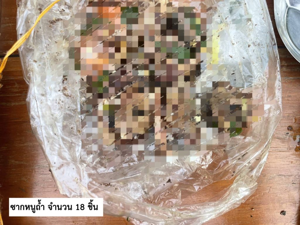 การจับกุมดังกล่าวเป็นไปตามรายงานที่นายวิเชียร ชิณวงษ์ หัวหน้าเขตรักษาพันธุ์สัตว์ป่าบุณฑริก-ยอดมน ได้แจ้งต่อนายพิชัย วัชรพงษ์ไพบูลย์ ผู้อำนวยการสำนักบริหารพื้นที่อนุรักษ์ที่ 9 (อุบลราชธานี) โดยเจ้าหน้าที่สามารถยึดของกลางสำคัญ ได้แก่ ซากหนูถ้ำที่ถูกชำแหละ จำนวน 18 ชิ้น ซึ่งเป็นสัตว์ป่าคุ้มครองจำพวกสัตว์เลี้ยงลูกด้วยนม ลำดับที่ 165 พร้อมด้วย อาวุธปืนยาวอัดลม ยี่ห้อ SAMU SAMURAI AIRGUNS 1 กระบอก ซึ่งมีกล้องเล็งเป้าและกระบอกเก็บเสียงติดตั้งอยู่ และอุปกรณ์อื่นๆ ที่ใช้ในการกระทำความผิด เช่น รถจักรยานยนต์ฮอนด้าเวฟไอ มีด ที่สูบลม ไฟฉายคาดศีรษะ เปลนอน หม้อสนาม และกระเป๋าถุงทะเล