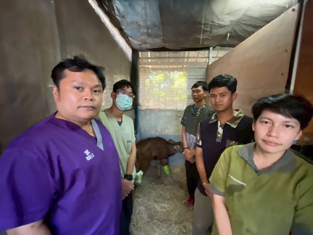 ทั้งนี้ ทีมสัตวแพทย์ประกอบด้วย นายสัตวแพทย์นราธิป วรวัฒนธรรม สัตวแพทย์ประจำ สบอ.1 ร่วมกับ สัตวแพทย์หญิงพรรณราย ว่องวัฒนกิจ นายสัตวแพทย์ปุญญพัฒน์ สารแขวีระกุล สัตวแพทย์ประจำสำนักบริหารพื้นที่อนุรักษ์ที่ 7 (นครราชสีมา) และนายสัตวแพทย์วัชรินทร์ หินอ่อน ผู้อำนวยการคลินิกปศุสัตว์และสัตว์ป่า โรงพยาบาลสัตว์ปากช่อง พร้อมทีมเจ้าหน้าที่ ได้ร่วมกันทำการผ่าตัดลูกกระทิง โดยวางยาสลบเพื่อตัดบริเวณขาหลังขวาที่เป็นเนื้อตายออก เนื่องจากพบว่าบริเวณดังกล่าวเริ่มเน่าเปื่อย อาจทำให้เกิดการติดเชื้อได้