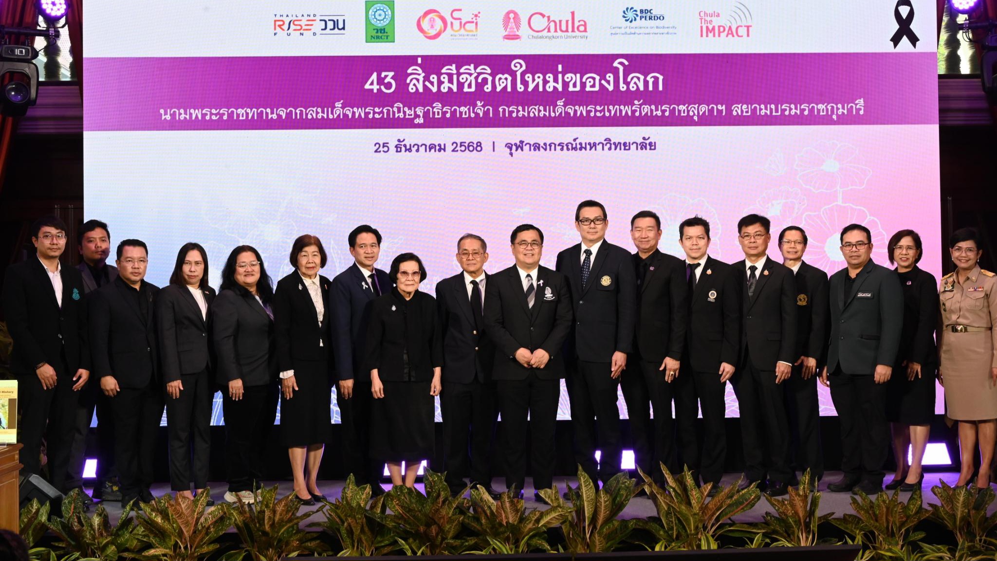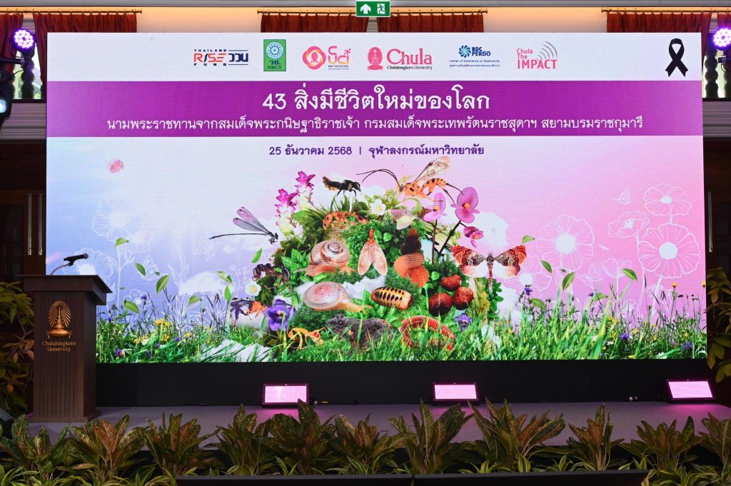 25 ธันวาคม 2568 – นายอรรถพล เจริญชันษา อธิบดีกรมอุทยานแห่งชาติ สัตว์ป่า และพันธุ์พืช มอบหมายให้นางสุนีย์ ศักดิ์เสือ ผู้อำนวยการสำนักวิจัยการอนุรักษ์ป่าไม้และพันธุ์พืช เป็นผู้แทนเข้าร่วมงานแถลงข่าว “43 สิ่งมีชีวิตใหม่ของโลก นามพระราชทานจากสมเด็จพระกนิษฐาธิราชเจ้า กรมสมเด็จพระเทพรัตนราชสุดาฯ สยามบรมราชกุมารี” (Chula the Impact ครั้งที่ 36) ณ อาคารมหาจุฬาลงกรณ์ จุฬาลงกรณ์มหาวิทยาลัย เพื่อร่วมเฉลิมพระเกียรติเนื่องในโอกาสมหามงคลเฉลิมพระชนมายุ 70 พรรษา