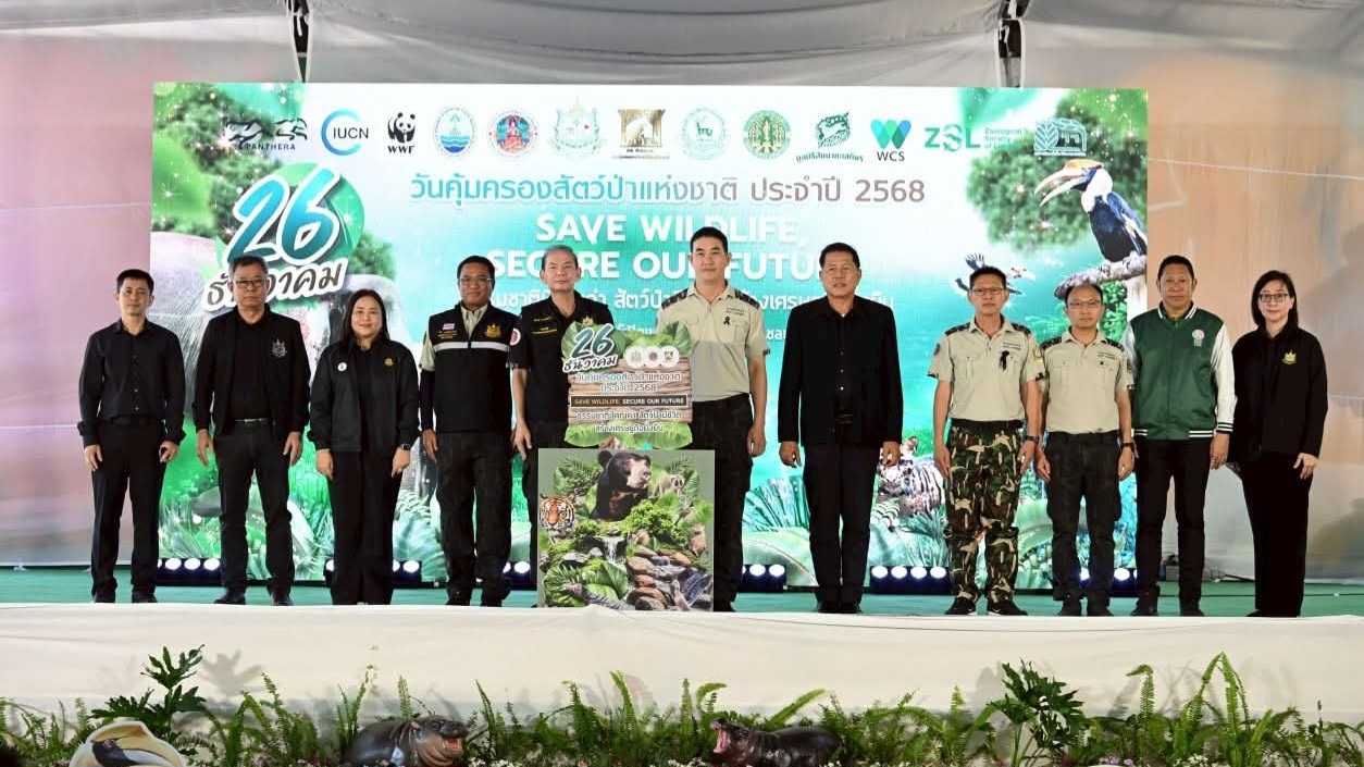 กรมอุทยานแห่งชาติ สัตว์ป่า และพันธุ์พืช จัดงานวันคุ้มครองสัตว์ป่าแห่งชาติ ประจำปี 2568 อย่างยิ่งใหญ่ ภายใต้แนวคิด “Save Wildlife, Secure Our Future : ธรรมชาติมีคุณค่า สัตว์ป่ามีชีวิต สร้างเศรษฐกิจยั่งยืน” โดยมีนายนิพนธ์ จำนงค์สิริศักดิ์ รองปลัดกระทรวงทรัพยากรธรรมชาติและสิ่งแวดล้อม เป็นประธานในพิธีเปิดงาน นายอรรถพล เจริญชันษา อธิบดีกรมอุทยานแห่งชาติ สัตว์ป่า และพันธุ์พืช กล่าวรายงาน พร้อมด้วยนายวีระ ขุนไชยรักษ์ รองอธิบดีกรมอุทยานแห่งชาติฯ นายสุขี บุญสร้าง ผู้อำนวยการสำนักอนุรักษ์สัตว์ป่า นายสราวุธ อุเทนรัตน์ ผู้อำนวยการสำนักบริหารพื้นที่อนุรักษ์ที่ 2 (ศรีราชา) นายณรงวิทย์ ชดช้อย ผู้อำนวยการสวนสัตว์เปิดเขาเขียว นายชัยณรงค์ ปั้นคง หัวหน้าฝ่ายอนุรักษ์วิจัยและสุขภาพสัตว์ สวนสัตว์เปิดเขาเขียว นายภาณุเดช เกิดมะลิ ประธานมูลนิธิสืบ นาคะเสถียร คุณกฤษณา แก้วปลั่ง ผู้อำนวยการองค์การ Panthera ประเทศไทย นายสมศักดิ์ เกตุวัตถา อดีตนายกองค์การบริหารส่วนตำบลบางพระ ผู้บริหาร เจ้าหน้าที่กรมอุทยานแห่งชาติฯ ภาคีเครือข่ายด้านการอนุรักษ์สัตว์ป่า นักเรียน นักศึกษา และประชาชนที่สนใจ เข้าร่วมงาน ณ สวนสัตว์เปิดเขาเขียว จ.ชลบุรี
