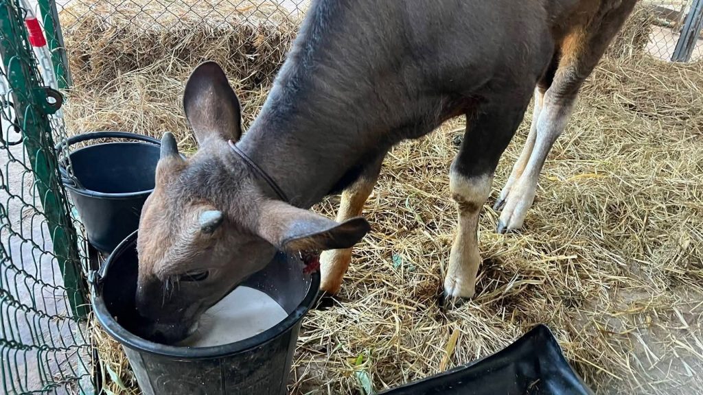 นายยศวัฒน์ กล่าวว่า เมื่อวันที่ 11 กันยายน 2567 สำนักบริหารพื้นที่อนุรักษ์ที่ 1 สาขาสระบุรี ได้ส่งมอบลูกกระทิงพลัดหลงเพศผู้ อายุประมาณ 2-3 เดือน น้ำหนักเพียง 42.5 กิโลกรัม ให้สถานีเพาะเลี้ยงสัตว์ป่าช่องกล่ำบนดูแลอนุบาล เนื่องจากลูกกระทิงตัวนี้ยังคงต้องได้รับการเลี้ยงด้วยนมและการดูแลจากสัตวแพทย์อย่างใกล้ชิดต่อเนื่อง