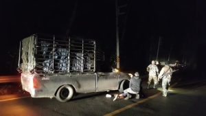 กระทั่งเวลา 02.00 น. ของวันที่ 30 ธันวาคม 2568 เจ้าหน้าที่ชุดที่ 1 สังเกตุเห็นรถกระบะมีโครงต้องสงสัย 3 คัน ขับตามกันมาทิ้งระยะห่างประมาณ 3-4 นาที จึงแจ้งเตือนเจ้าหน้าที่ที่จุดตรวจและติดตามอย่างระมัดระวัง