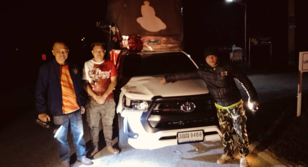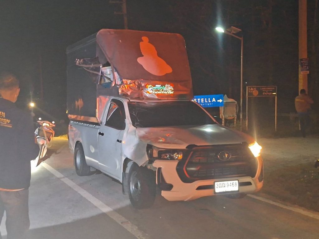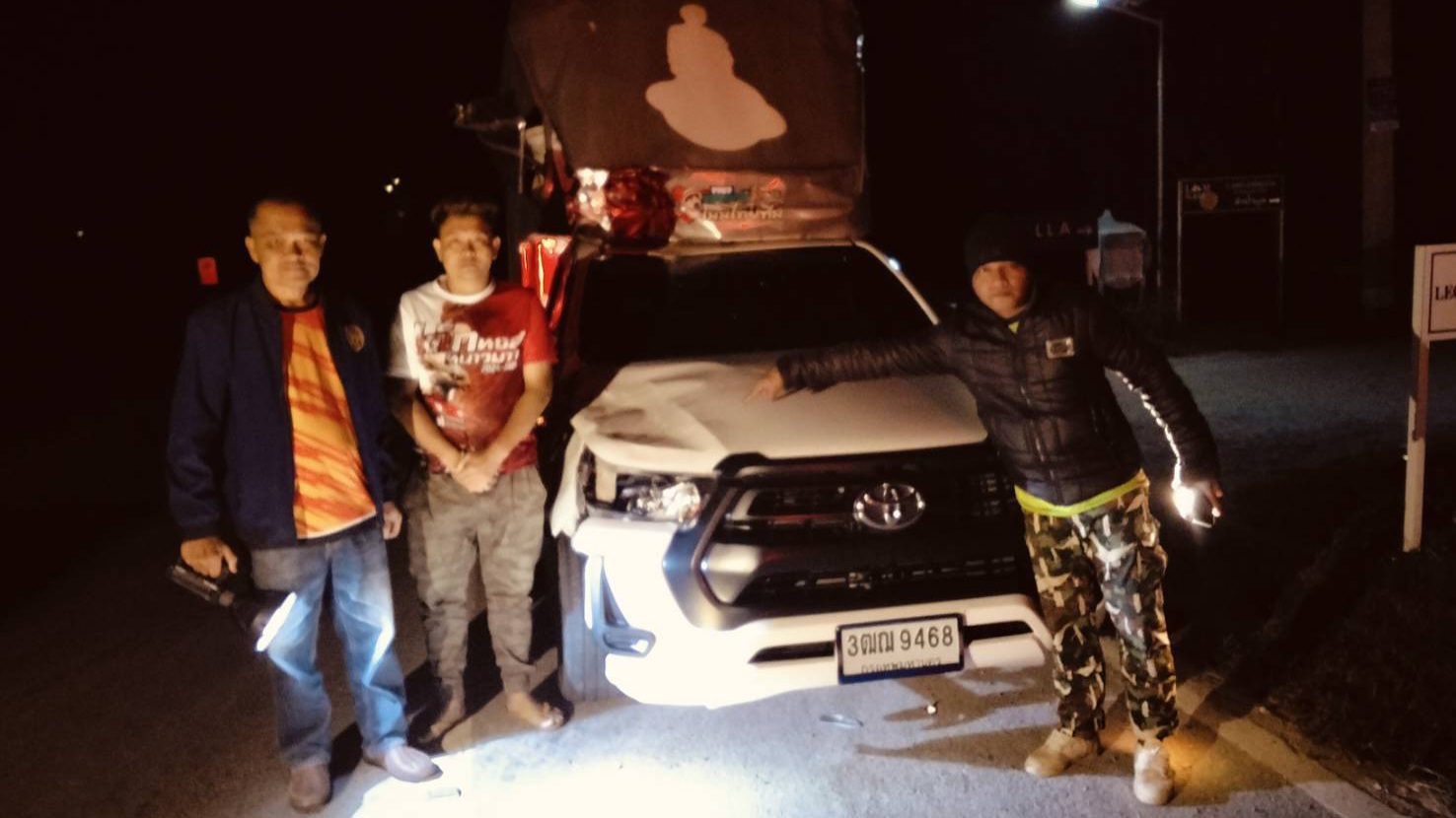 จากการตรวจสอบ พบรถยนต์คันเกิดเหตุเป็นรถยนต์กระบะตู้ ยี่ห้อโตโยต้ารีโว้ สีขาว ทะเบียนกรุงเทพมหานคร จอดอยู่ริมถนนในสภาพได้รับความเสียหายหลายจุด ได้แก่ ไฟหน้าด้านขวาแตก กระจกมองข้างด้านขวาหัก กระจกหน้าแตก ฝากระโปรงบุบ แก้มข้างด้านขวาบุบ กระจังหน้าแตก และตู้ทึบด้านบนบุบและฉีกขาด อย่างไรก็ตาม รถยังสามารถวิ่งได้ปกติ
