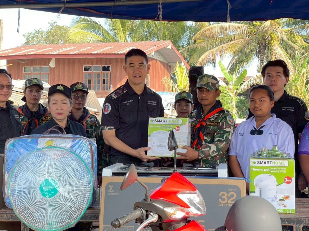 จากนั้น คณะได้เดินทางต่อไปยังโรงเรียนภูมิซรอลวิทยา เพื่อรับฟังบรรยายสรุปสถานการณ์ชายแดนจากผู้แทนกองกำลังสุรนารี พร้อมมอบสิ่งของบำรุงขวัญและนโยบายการป้องกันปัญหาไฟป่าหมอกควันในพื้นที่รอยต่อชายแดน