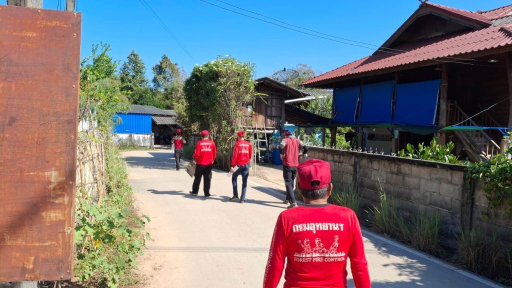 สถานีควบคุมไฟป่าแจ้ซ้อนออกลาดตระเวนป้องกันไฟป่า พร้อมลงพื้นที่เคาะประตูบ้านให้ความรู้เกี่ยวกับไฟป่าและฝุ่นควัน