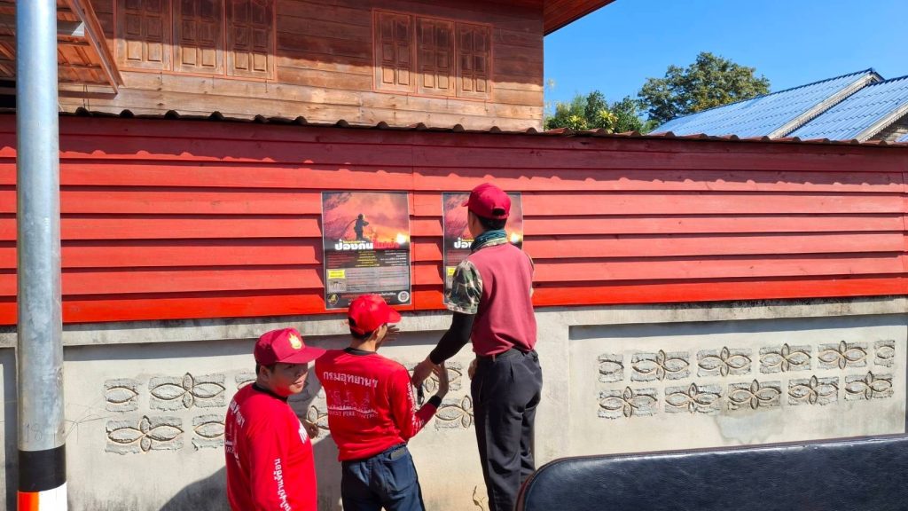 นอกจากนี้ ได้นำเจ้าหน้าที่สถานีฯ ออกไปรณรงค์ “ประชาสัมพันธ์เชิงรุกแบบเคาะประตูบ้าน” ในเขตท้องที่บ้านหลวง หมู่ที่ 13 บ้านป่าเวียง หมู่ที่ 11 และบ้านทุ่งแท่น หมู่ที่ 3 ต.ทุ่งกว๋าว อ.เมืองปาน จ.ลำปาง โดยการเดินเข้าหาพี่น้องประชาชนถึงครัวเรือนเพื่อให้ความรู้เกี่ยวกับอันตรายและผลกระทบจากไฟป่าและฝุ่นควัน PM2.5 ขอความร่วมมืองดการเผาในที่โล่งและพื้นที่เกษตรกรรมในช่วงเฝ้าระวัง และสร้างความเข้าใจ ถึงความสำคัญของการรักษาผืนป่า ซึ่งการรณรงค์ประชาสัมพันธ์แบบเคาะประตูบ้านจะช่วยให้เกิดความร่วมมือจากภายในชุมชนอย่างแท้จริง เพราะประชาชนและชุมชนเป็นกุญแจสำคัญในการลดสถิติการเกิดไฟป่าในเขตพื้นที่ได้เป็นอย่างดี.