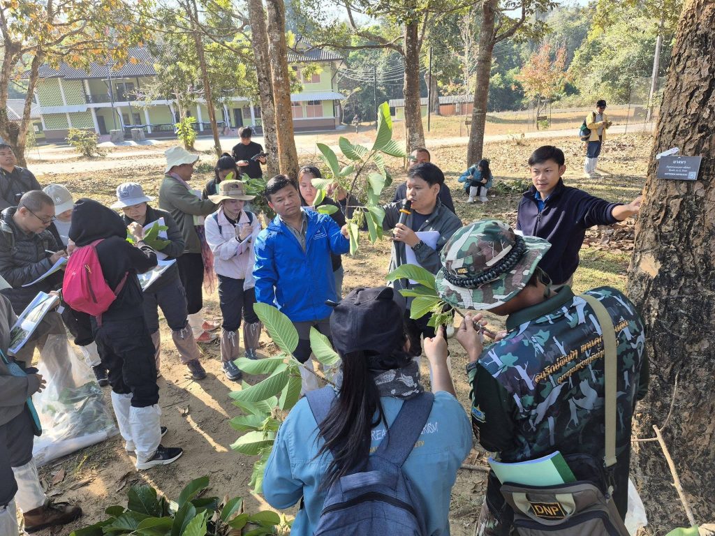หลังจากผ่านการเรียนรู้ภาคทฤษฎีแล้ว ผู้เข้าอบรมได้ลงพื้นที่ฝึกปฏิบัติในภาคสนามจริง ณ พื้นที่อุทยานแห่งชาติเขาใหญ่ ซึ่งเป็นแหล่งศึกษาธรรมชาติที่สมบูรณ์และมีความหลากหลายทางชีวภาพสูง มีพรรณไม้นานาชนิดที่เป็นตัวแทนของป่าประเภทต่างๆ อย่างครบถ้วน ในการฝึกปฏิบัติครั้งนี้ผู้เข้าอบรมจะได้ศึกษาพรรณไม้เกือบ 100 ชนิด ภายใต้การแนะนำและถ่ายทอดประสบการณ์จากนายวรดลต์ แจ่มจำรูญ ผู้เชี่ยวชาญเฉพาะด้านอนุกรมวิธานพืช พร้อมคณะวิทยากร โดยมุ่งเน้นให้ผู้เข้ารับการอบรมมีทักษะและความสามารถในการจำแนกและวินิจฉัยไม้ต้นในระดับวงศ์ สกุล และชนิดได้อย่างถูกต้องแม่นยำตามหลักรุกขวิทยาป่าไม้ สามารถสังเกตและจดจำลักษณะเฉพาะของพรรณไม้แต่ละชนิดในสภาพธรรมชาติ ทั้งลักษณะเปลือกไม้ ใบ ดอก ผล และรูปทรงของต้น เข้าใจเขตการกระจายพันธุ์ของพรรณไม้ในป่าประเภทต่างๆ ของประเทศไทย รวมถึงความสัมพันธ์ระหว่างพรรณไม้กับสภาพแวดล้อม ตลอดจนการใช้ประโยชน์จากพรรณไม้ในทุกมิติ ทั้งด้านเศรษฐกิจ สังคม วัฒนธรรม และนิเวศวิทยา