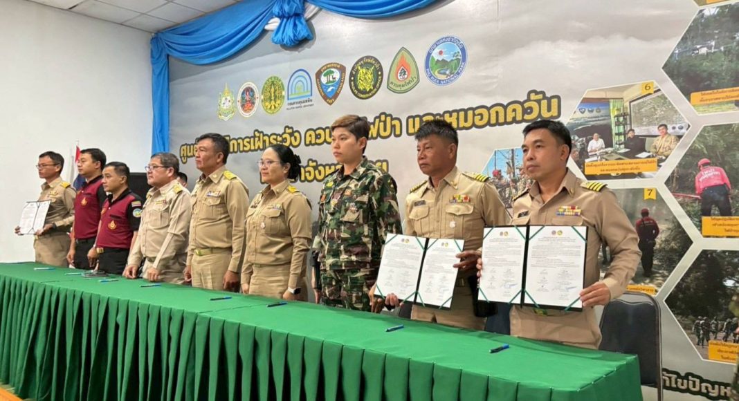 พร้อมทั้ง ได้ร่วมลงนามในพิธีลงนามในบันทึกความร่วมมือ (Memorandum of Understanding : MOU) เรื่อง การป้องกันและแก้ไขปัญหาไฟป่า หมอกควัน และฝุ่นละอองขนาดเล็ก (PM2.5) ปี พ.ศ. 2569 ระหว่างอุทยานแห่งชาติภูเรือ และชุมชนโดยรอบแนวเขต โดยมีเจตนารมณ์สำคัญ ได้แก่ การร่วมเฝ้าระวังพื้นที่เสี่ยงการเกิดไฟป่า การร่วมวางแผนและปฏิบัติการป้องกันและดับไฟป่า รวมถึงการจัดกิจกรรมรณรงค์และประชาสัมพันธ์ให้ความรู้แก่ประชาชนในพื้นที่ เพื่อร่วมกันลดปัญหาไฟป่า หมอกควัน และฝุ่นละอองขนาดเล็ก (PM2.5) อย่างเป็นรูปธรรม