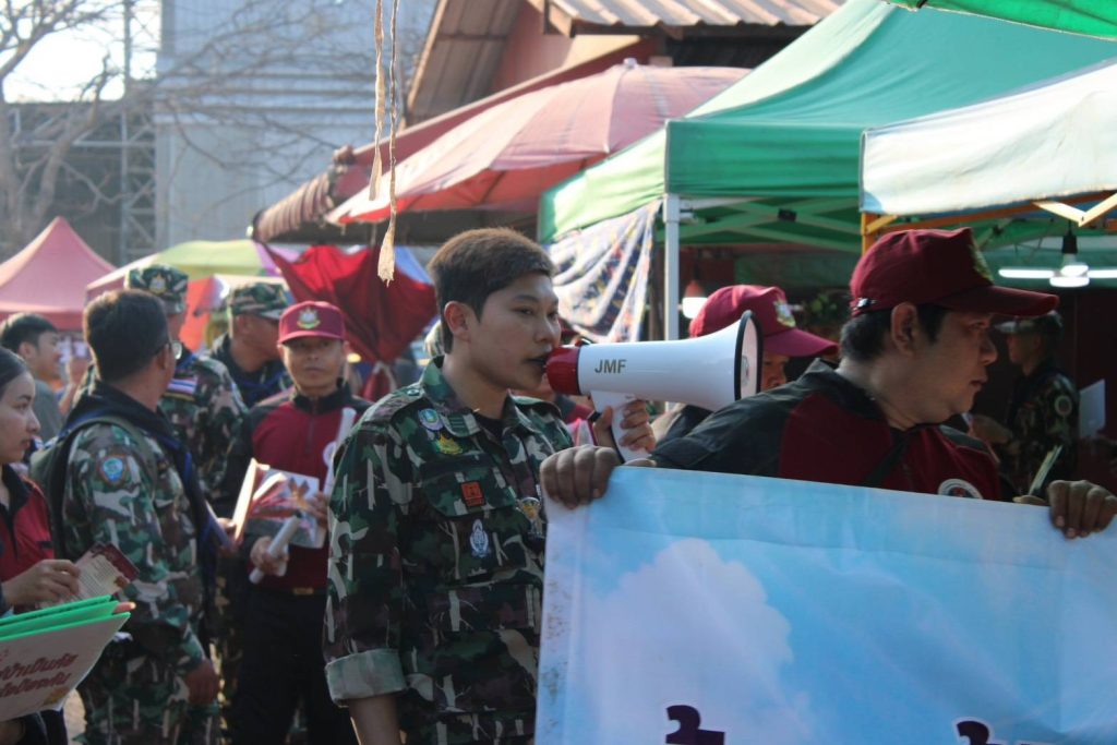 ภายหลังพิธีลงนาม นายกิตติคุณ บุตรคุณ พร้อมด้วยหัวหน้าส่วนราชการและเจ้าหน้าที่ ได้ร่วมกิจกรรมรณรงค์หยุดเผาป่าเชิงรุก “เคาะประตูบ้าน” ณ ตลาดนัดภูเพชรทอง อำเภอภูเรือ จังหวัดเลย เพื่อประชาสัมพันธ์ สร้างความเข้าใจ และตระหนักรู้ถึงผลกระทบจากไฟป่า หมอกควัน และฝุ่นละอองขนาดเล็ก (PM2.5) พร้อมเชิญชวนประชาชนร่วมเป็นส่วนหนึ่งในการป้องกันและแก้ไขปัญหาอย่างยั่งยืน.