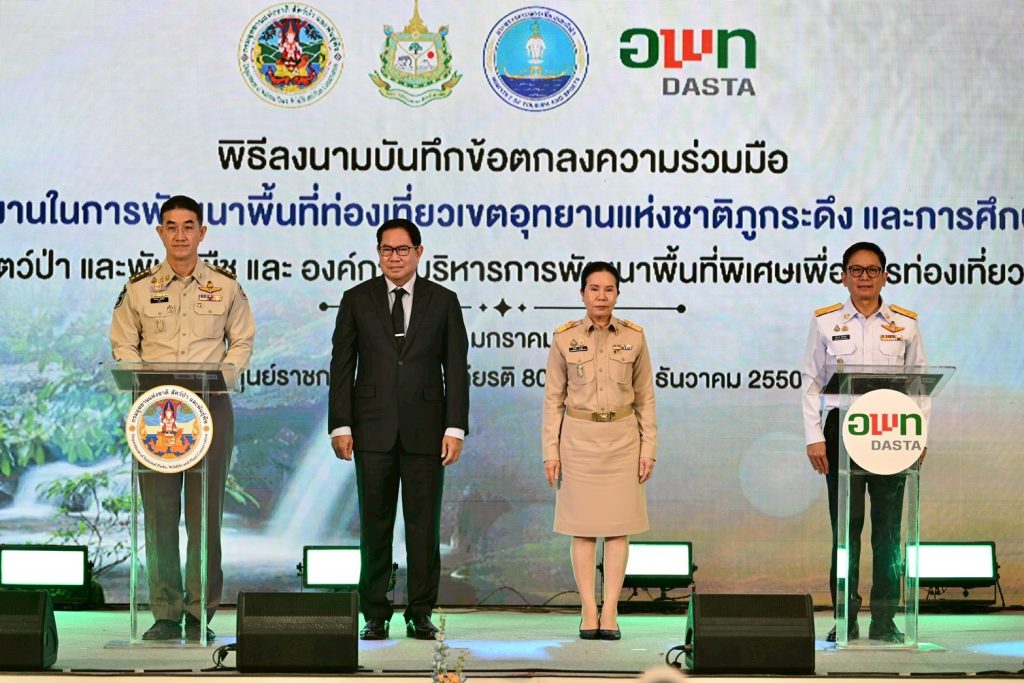 16 มกราคม 2569 กรมอุทยานแห่งชาติ สัตว์ป่า และพันธุ์พืช ร่วมกับองค์การบริหารการพัฒนาพื้นที่พิเศษเพื่อการท่องเที่ยวอย่างยั่งยืน (อพท.) และคณะสถาปัตยกรรมศาสตร์ จุฬาลงกรณ์มหาวิทยาลัย ได้ลงนามบันทึกข้อตกลงความร่วมมือ (MOU) ครั้งสำคัญรวม 2 ฉบับ เพื่อผนึกกำลังในการพัฒนาพื้นที่ท่องเที่ยวเขตอุทยานแห่งชาติภูกระดึง และการศึกษา วิจัย รวมถึงพัฒนาพื้นที่ท่องเที่ยวอย่างเป็นระบบ โดยมุ่งเน้นการใช้ฐานข้อมูลทางวิชาการและนวัตกรรมที่เป็นมิตรต่อสิ่งแวดล้อมมาเป็นหัวใจหลักในการบริหารจัดการพื้นที่อนุรักษ์ให้เข้าสู่มาตรฐานสากล ซึ่งความร่วมมือในครั้งนี้ถือเป็นการสร้างโมเดลใหม่ที่เน้นความสมดุลระหว่างการอนุรักษ์ทรัพยากรธรรมชาติกับการเปิดโอกาสให้ประชาชนทุกกลุ่มเข้าถึงพื้นที่ได้อย่างมีคุณภาพและปลอดภัย