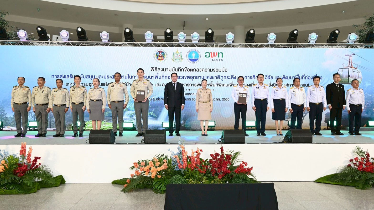 นายอรรถพล เจริญชันษา อธิบดีกรมอุทยานแห่งชาติ สัตว์ป่า และพันธุ์พืช พร้อมด้วย นายศิริปกรณ์ เชี่ยวสมุทร ผู้อำนวยการองค์การบริหารการพัฒนาพื้นที่พิเศษเพื่อการท่องเที่ยวอย่างยั่งยืน (องค์การมหาชน) หรือ อพท. และผู้ช่วยศาสตราจารย์ ศรายุทธ ทรัพย์สุข คณบดีคณะสถาปัตยกรรมศาสตร์ จุฬาลงกรณ์มหาวิทยาลัย ร่วมพิธีลงนามบันทึกข้อตกลงความร่วมมือ (MOU) การส่งเสริม สนับสนุน และประสานงานในการพัฒนาพื้นที่ท่องเที่ยวเขตอุทยานแห่งชาติภูกระดึง และการศึกษา วิจัย และพัฒนาพื้นที่ท่องเที่ยว ระหว่างกรมอุทยานแห่งชาติ สัตว์ป่า และพันธุ์พืช และองค์การบริหารการพัฒนาพื้นที่พิเศษเพื่อการท่องเที่ยวอย่างยั่งยืน (องค์การมหาชน) 2 ฉบับ โดยฉบับที่ 1 เป็นการส่งเสริม สนับสนุน และประสานงานในการพัฒนาพื้นที่ท่องเที่ยวเขตอุทยานแห่งชาติภูกระดึง และฉบับที่ 2 เป็นการศึกษา วิจัย และพัฒนาพื้นที่ท่องเที่ยว