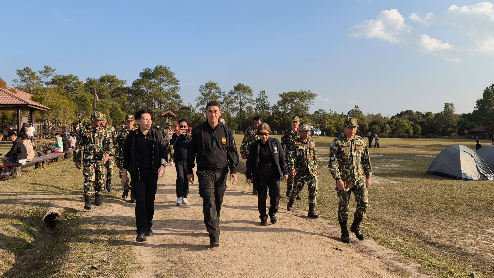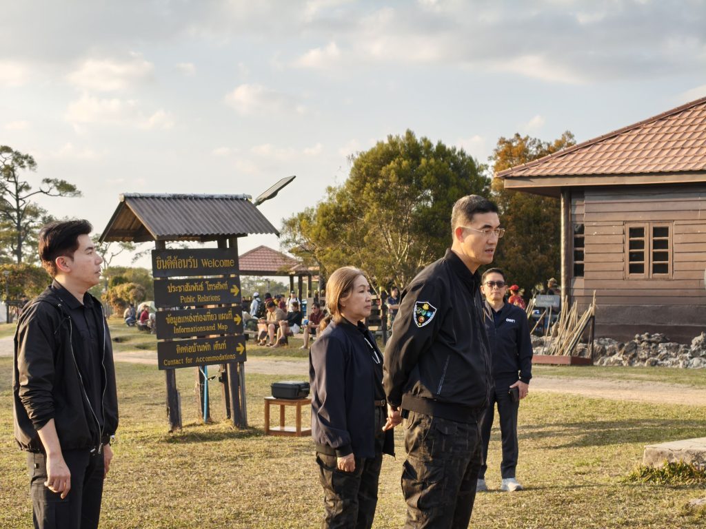 อธิบดีกรมอุทยานแห่งชาติฯ ได้กล่าวทักทายและพบปะนักท่องเที่ยวที่เดินทางมาใช้บริการ รับฟังความคิดเห็นเกี่ยวกับคุณภาพการให้บริการ พร้อมทั้งสอบถามเกี่ยวกับการลงทะเบียนเข้าใช้งานระบบ LINE Open Chat ของอุทยานแห่งชาติภูกระดึง ซึ่งเป็นช่องทางการสื่อสารสำคัญที่นักท่องเที่ยวทุกรายจะต้องเข้าร่วมโดยการสแกน QR Code ที่ศูนย์บริการนักท่องเที่ยวศรีฐาน