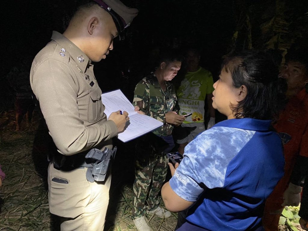 ต่อมาเจ้าหน้าที่อุทยานฯ ขญ.4 (คลองปลากั้ง) ได้ร่วมกับตำรวจ สภ.วังน้ำเขียว และกู้ภัยฮูก 31 เข้าตรวจสอบพื้นที่พบว่า สภาพพื้นที่เป็นป่าปลูกและมีหญ้ารก พบร่องรอยของกระทิงจำนวนมากในบริเวณรอบๆ ซึ่งจุดเกิดเหตุอยู่ห่างจากแนวเขตอุทยานแห่งชาติเขาใหญ่ประมาณ 7 กิโลเมตร จากการตรวจสอบร่างผู้เสียชีวิต พบมีบาดแผลฉกรรจ์บริเวณศีรษะ และรอยฟกช้ำรุนแรงที่แขนซ้าย เจ้าหน้าที่จึงนำร่างส่งชันสูตรอย่างละเอียดที่โรงพยาบาลวังน้ำเขียว