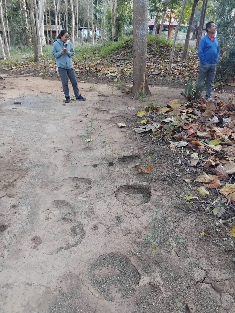 จนกระทั่งเวลาประมาณ 22.40 น. ของวันเดียวกัน สัตวแพทย์หญิงนันทิตา รักษาชาติ ได้ประสานผู้ช่วยผู้ใหญ่บ้านสมพร เพื่อเข้าตรวจสอบข้อเท็จจริงในพื้นที่ตำบลบ้านใหม่ (เขื่อนผามูก) โดยทีมจากองค์การบริหารส่วนตำบลบ้านใหม่ได้ใช้โดรนคุณภาพสูงบินขึ้นไปเพื่อสังเกตอาการของช้างป่า จากภาพถ่ายพบว่าช้างป่าตัวดังกล่าวกำลังหากินอยู่กับฝูงช้างป่าทั้งหมด 3 ตัว สิ่งที่น่าสังเกตคือ ไม่พบแผ่นตะปูติดที่ตีนหน้าซ้ายของช้างแต่อย่างใด