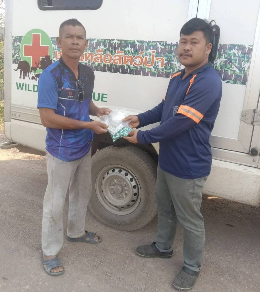 ในเช้าวันที่ 17 มกราคม 2569 เจ้าหน้าที่ศูนย์ช่วยเหลือสัตว์ป่าที่ 4 (ขอนแก่น) จึงนำยาปฏิชีวนะและยาลดการอักเสบมอบให้ทีมผู้ช่วยผู้ใหญ่บ้านสมพร เพื่อดำเนินการตามแผนการรักษาที่วางไว้ต่อไป โดยเจ้าหน้าที่จะคอยติดตามสถานการณ์อย่างใกล้ชิดและพร้อมให้การช่วยเหลือตลอด 24 ชั่วโมง