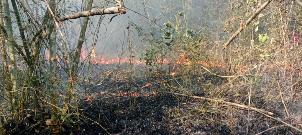 บริเวณที่เกิดเหตุตั้งอยู่ที่ทุ่งงูเหลือม ในเขตอุทยานแห่งชาติเขาใหญ่ ตำบลนาหินลาด อำเภอปากพลี จังหวัดนครนายก พิกัด 47P 762919E 1583307N สามารถมองเห็นกลุ่มควันจากผาตรอมใจได้บางส่วน เมื่อเจ้าหน้าที่เข้าถึงพื้นที่พบว่าไฟค่อนข้างรุนแรงและลุกลามไปตามทิศทางลม เนื่องจากเชื้อเพลิงส่วนใหญ่เป็นทุ่งหญ้า ทำให้ไฟแพร่กระจายอย่างรวดเร็วและควบคุมได้ยาก