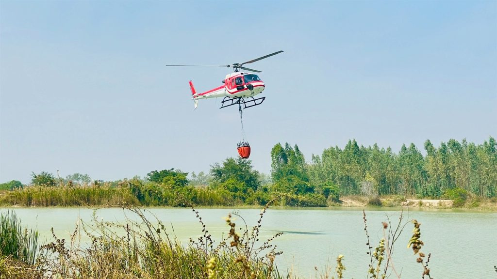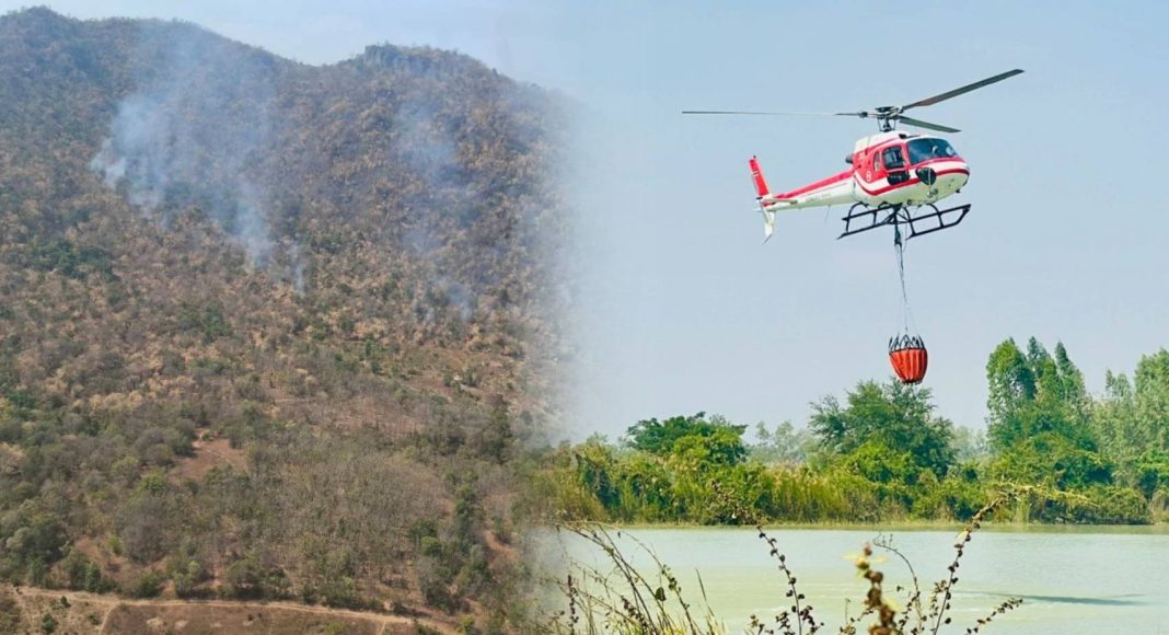 การปฏิบัติการในวันนี้เป็นการระดมกำลังขนาดใหญ่ โดยได้ประสานขอสนับสนุนเฮลิคอปเตอร์จากศูนย์ประสานงานพื้นที่ภาคกลาง นครสวรรค์ กระทรวงทรัพยากรธรรมชาติและสิ่งแวดล้อม จำนวน 1 ลำ เพื่อเข้าสนับสนุนการดับไฟทางอากาศ โดยการปฏิบัติการช่วงบ่าย ได้ใช้เฮลิคอปเตอร์ติดกระเช้าตักน้ำจากแหล่งน้ำใกล้เคียงเพื่อทิ้งน้ำดับไฟ จำนวน 30 เที่ยว ปริมาตรน้ำรวม 15,000 ลิตร พร้อมทั้งจัดวางกำลังเจ้าหน้าที่ภาคพื้นดินสำหรับดับไฟป่าจำนวน 25 นาย กระจายกำลังควบคุมไฟในพื้นที่เสี่ยงทั้ง 3 จุด เพื่อป้องกันมิให้ไฟป่าขยายวงกว้าง