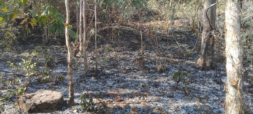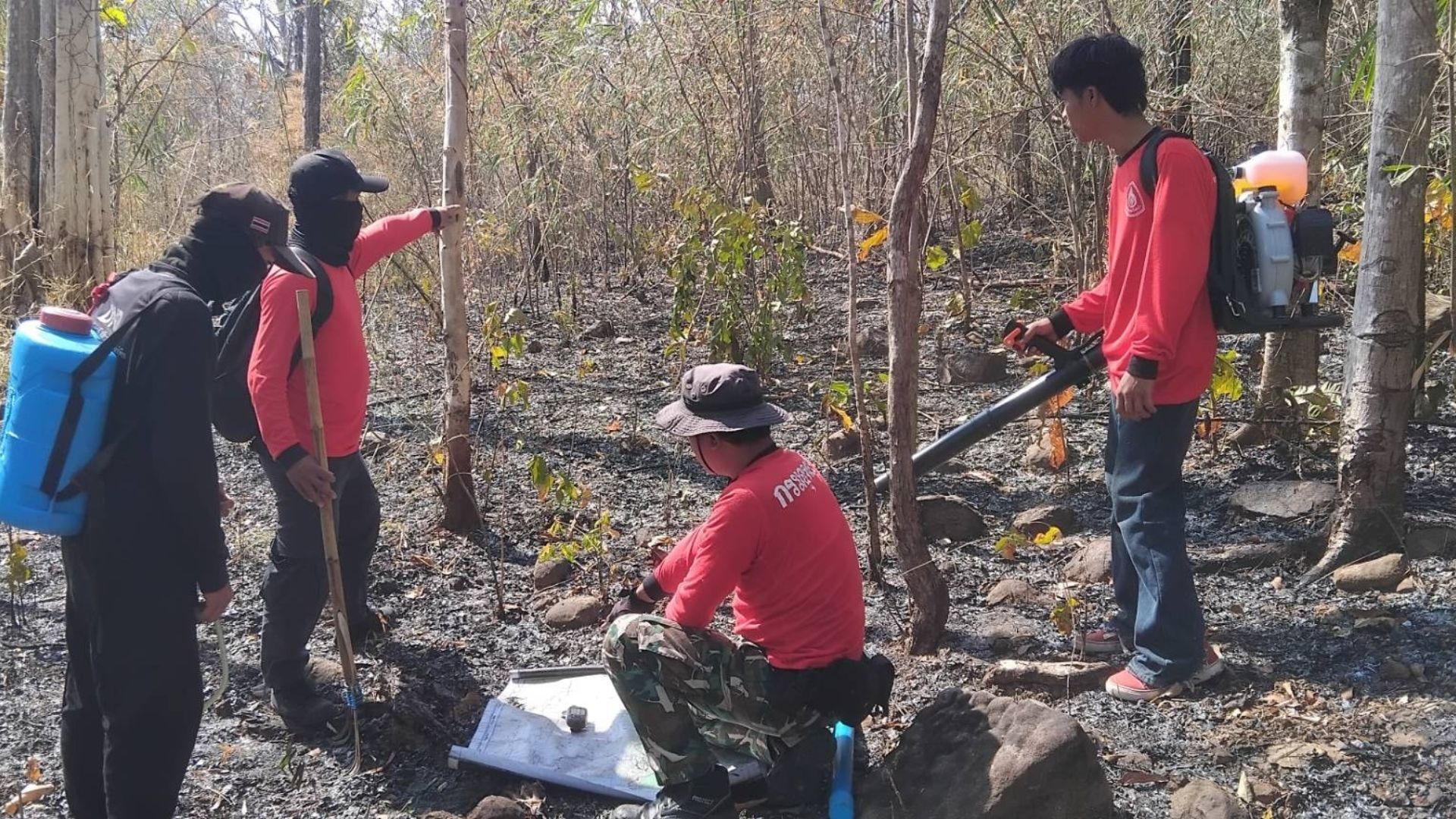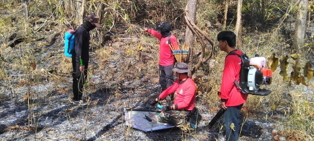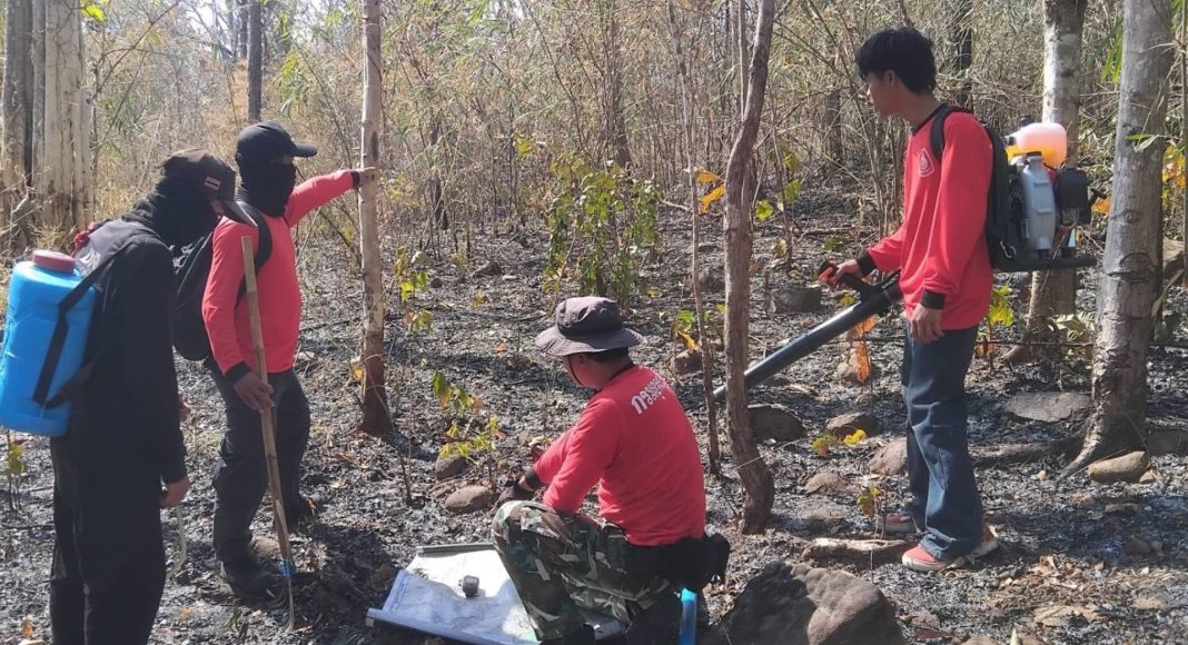 สถานีควบคุมไฟป่าผาแต้ม เฝ้าระวังจุดความร้อน หลังพบไฟไหม้ป่าเต็งรังในพื้นที่แล้ว 30 ไร่