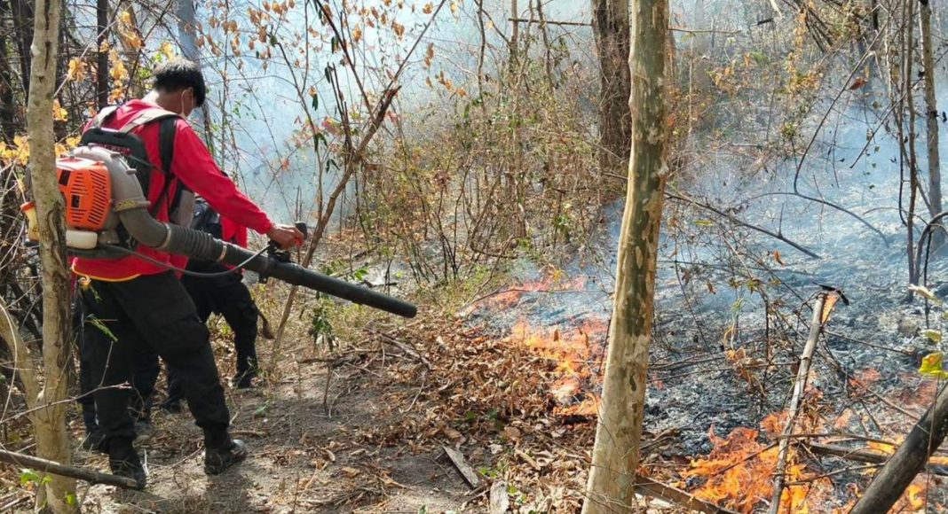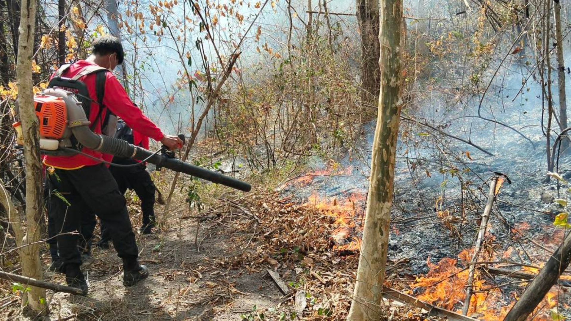 จนท.สกัดไฟป่าห้วยยาง สนธิกำลังดับไฟป่าดิบแล้งเผาวอด 45 ไร่ คาดสาเหตุจากความประมาท