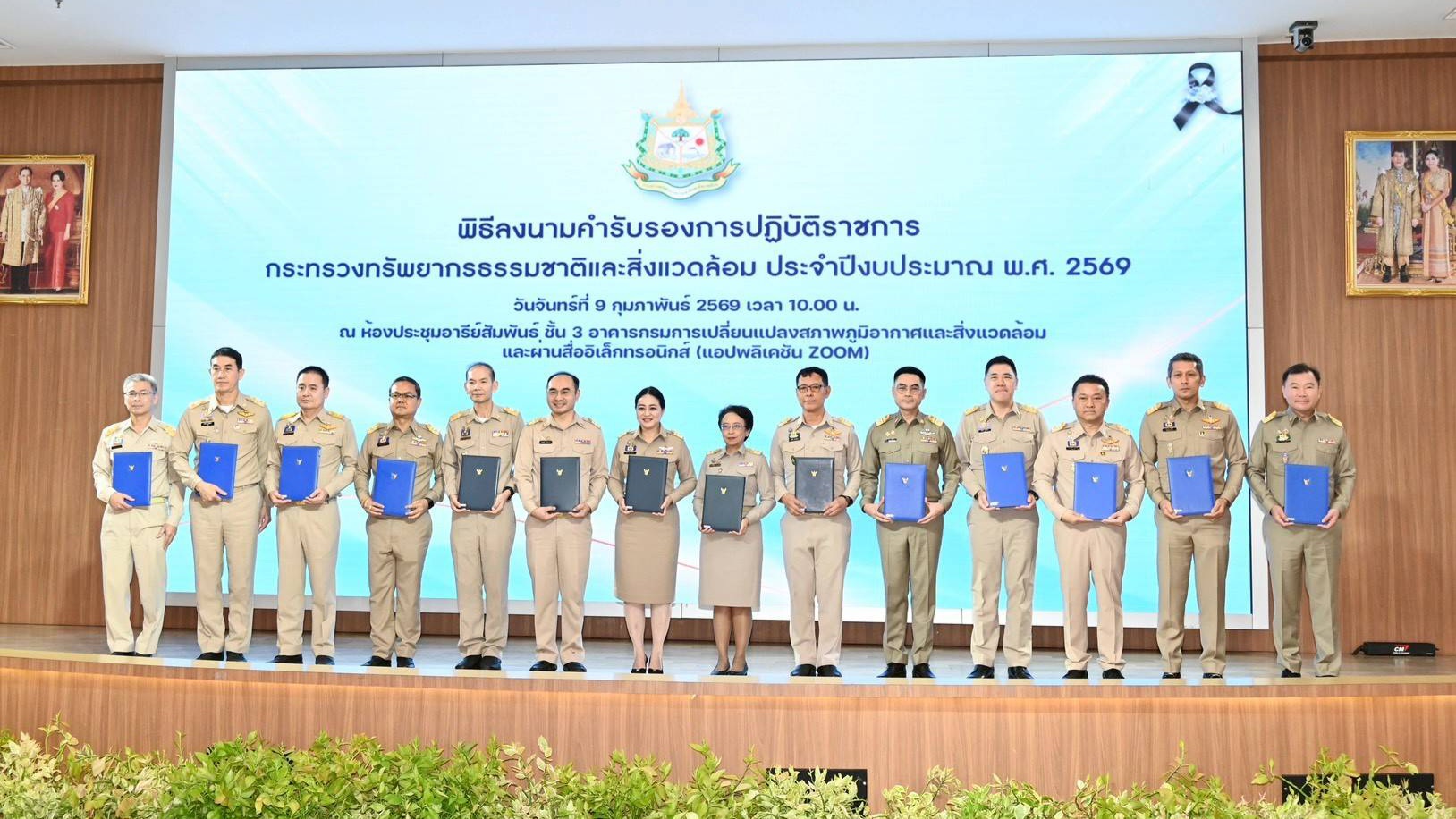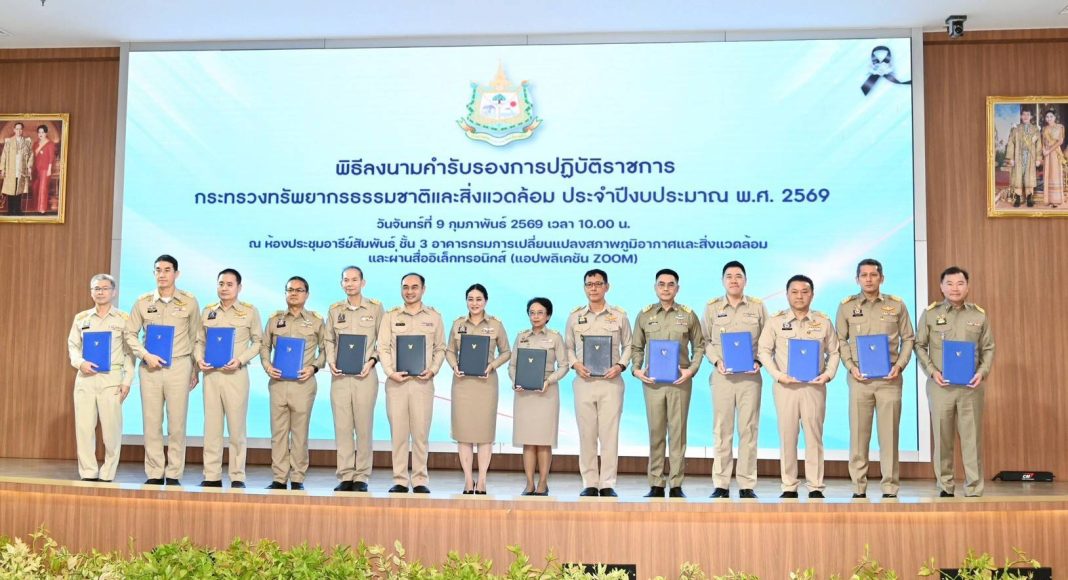 วันที่ 9 กุมภาพันธ์ 2569 เวลา 10.00 น. นายอรรถพล เจริญชันษา อธิบดีกรมอุทยานแห่งชาติ สัตว์ป่า และพันธุ์พืช เข้าร่วมพิธีลงนามคำรับรองการปฏิบัติราชการ กระทรวงทรัพยากรธรรมชาติและสิ่งแวดล้อม ประจำปีงบประมาณ พ.ศ. 2569 ณ ห้องประชุมอารีย์สัมพันธ์ ชั้น 3 อาคารกรมการเปลี่ยนแปลงสภาพภูมิอากาศและสิ่งแวดล้อม โดยมี ดร.รวีวรรณ ภูริเดช ปลัดกระทรวงทรัพยากรธรรมชาติและสิ่งแวดล้อม เป็นประธานในพิธี พร้อมด้วย นายประเสริฐ ศิรินภาพร นายนิพนธ์ จำนงสิริศักดิ์ นางสาวปรีญาพร สุวรรณเกษ และนายเผด็จ ลายทอง รองปลัดกระทรวงทรัพยากรธรรมชาติและสิ่งแวดล้อม ตลอดจน นายนรินทร์ ประทวนชัย รองอธิบดีกรมอุทยานแห่งชาติฯ และคณะผู้บริหารในสังกัดกระทรวงฯ เข้าร่วม