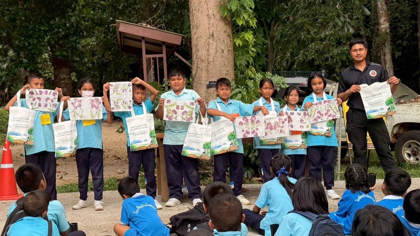 นายวัชระกล่าวเพิ่มเติมว่า เพื่อเป็นการขยายผลและสร้างความตระหนักรู้ที่ยั่งยืน อุทยานแห่งชาติธารเสด็จ-เกาะพะงัน ได้มอบถุงผ้าให้แก่โรงเรียนบ้านโฉลกหลำทุกคน เพื่อประชาสัมพันธ์และส่งเสริมโครงการ “งดรับ งดใช้ งดให้ ถุงพลาสติก” ซึ่งเป็นแคมเปญลดการใช้พลาสติกใช้ครั้งเดียวทิ้ง หวังเป็นอย่างยิ่งว่านักเรียนจะนำไปใช้ในชีวิตประจำวัน และเป็นตัวอย่างที่ดีในการรณรงค์ให้ครอบครัวและชุมชนลดการใช้ถุงพลาสติก เพื่อสิ่งแวดล้อมที่ดีขึ้นในอนาคต